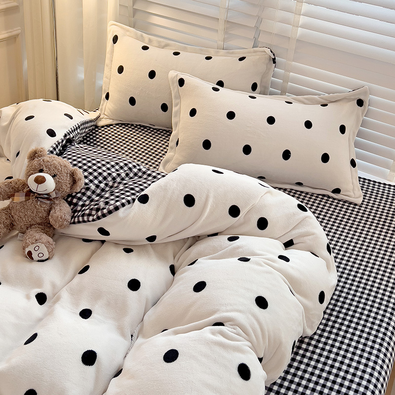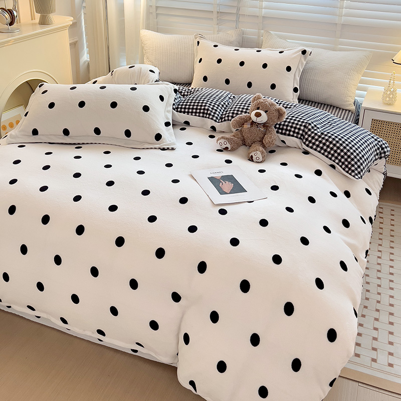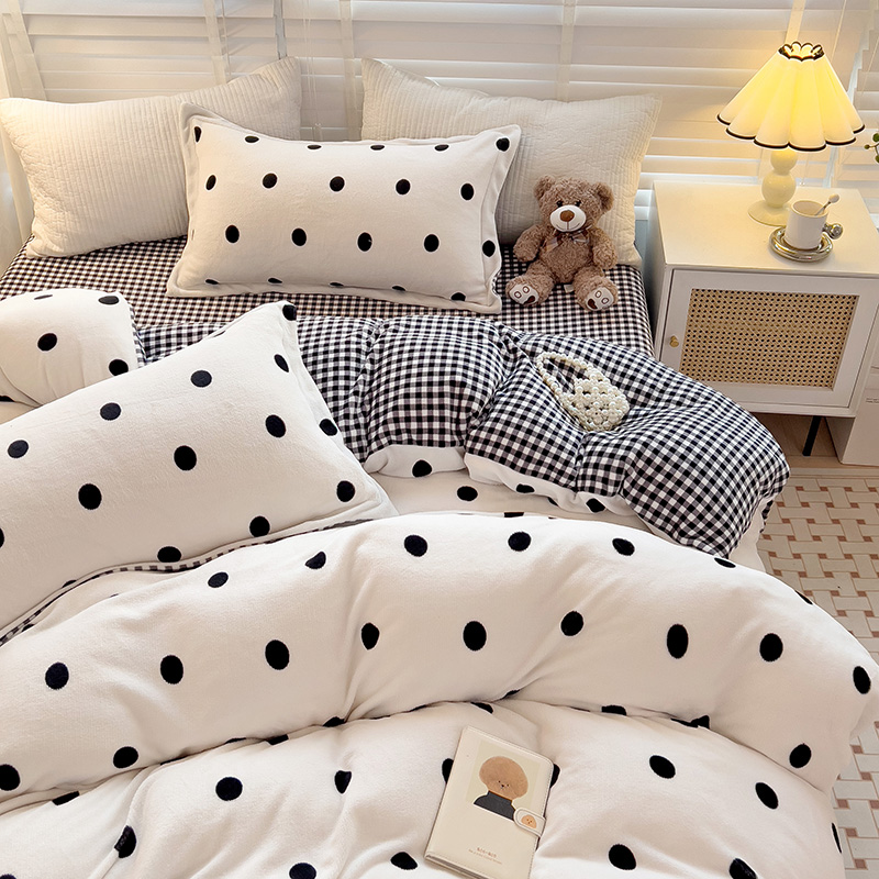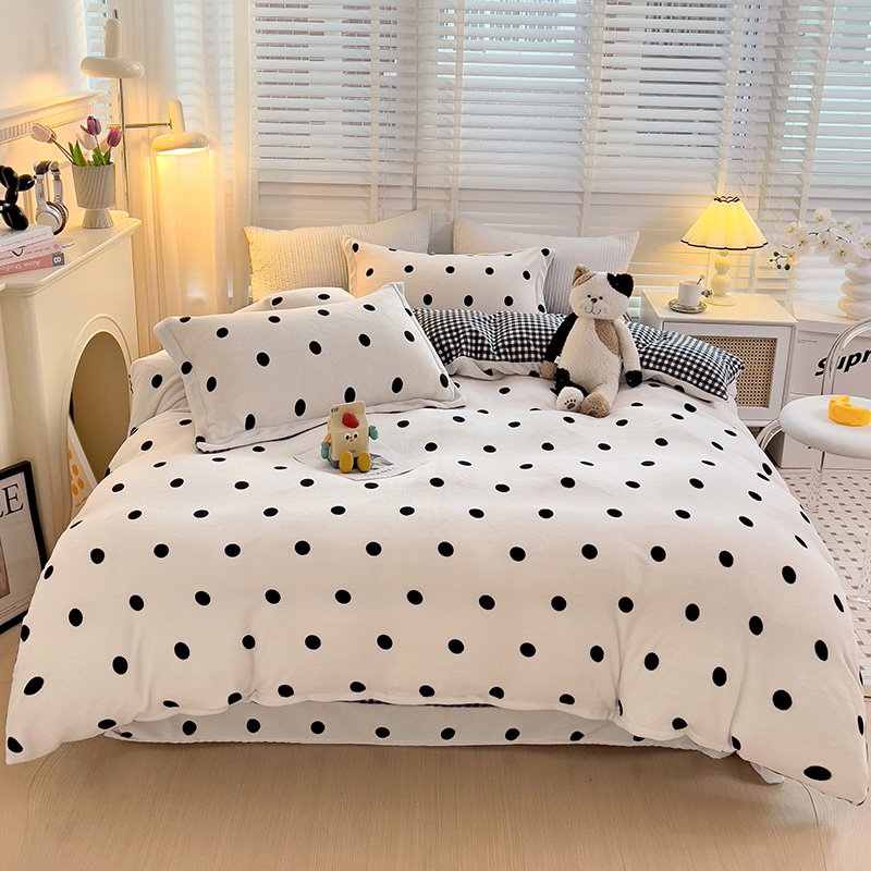 商品名称:乐童家纺 2024新款跑量款牛奶绒床裙四件套 黑白波点