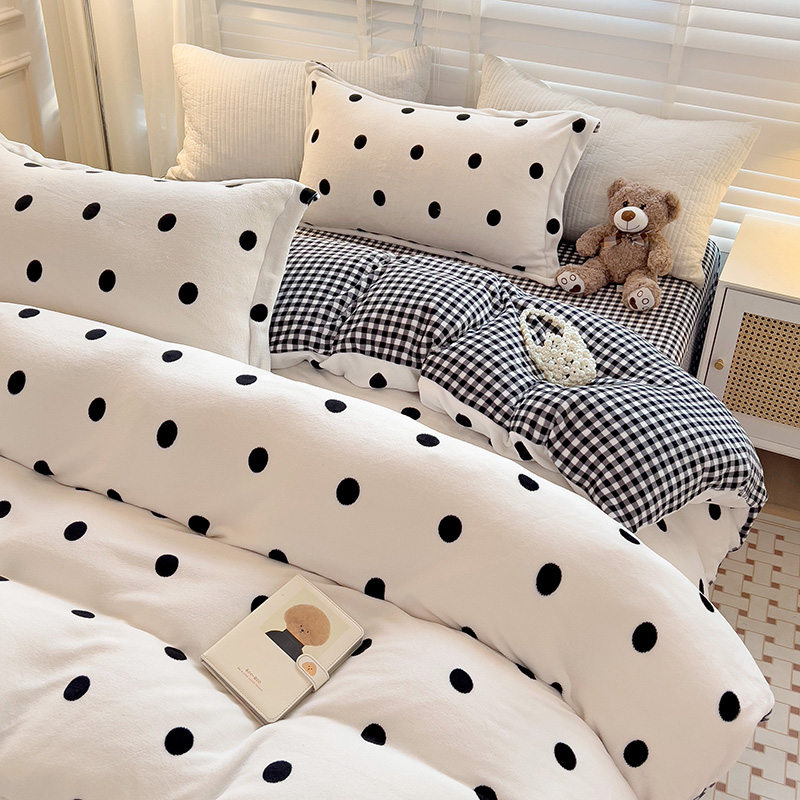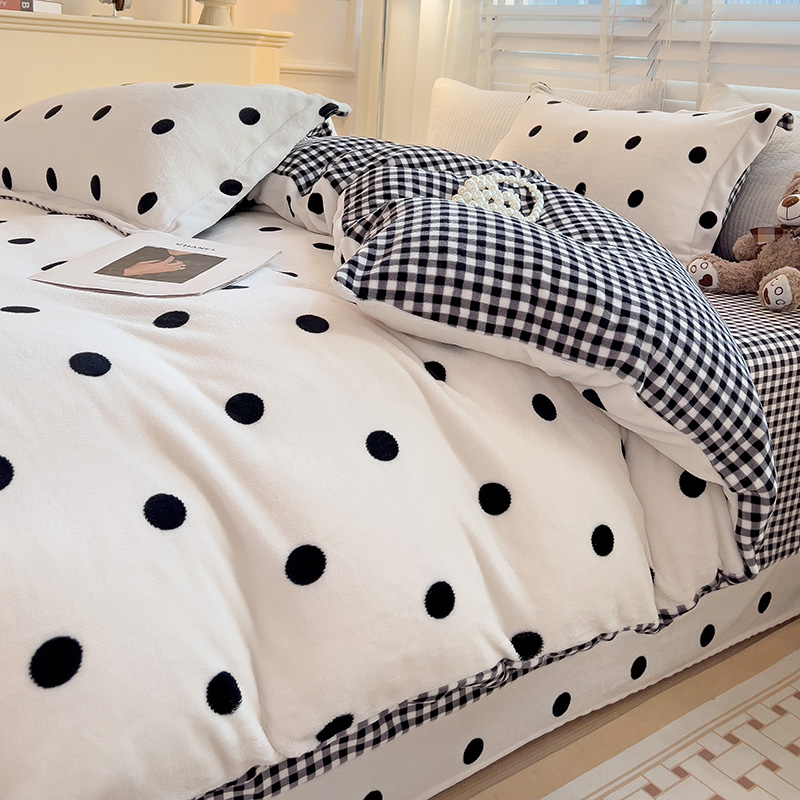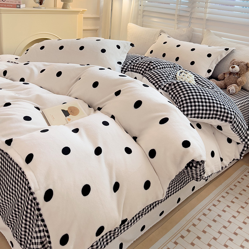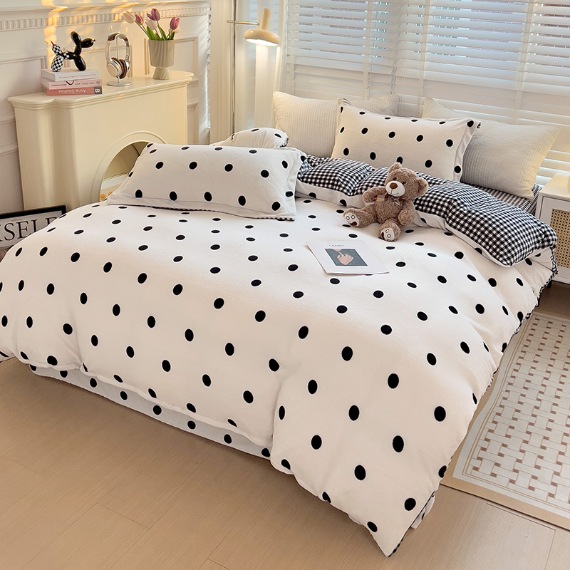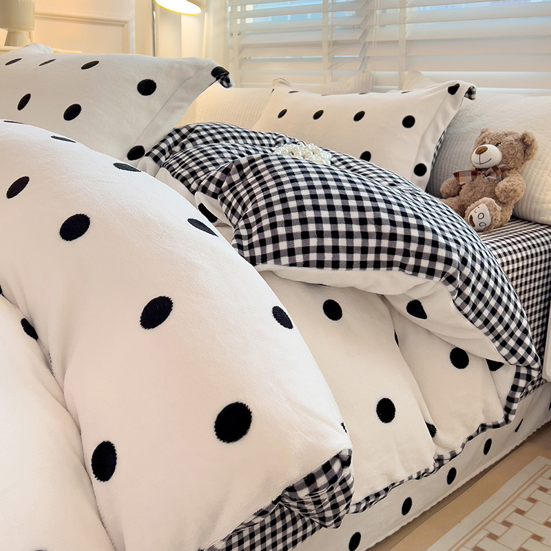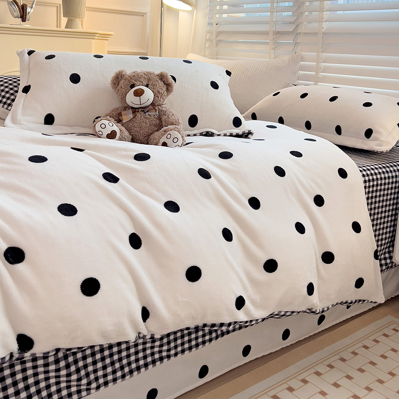乐童家纺 2024新款跑量款牛奶绒床裙四件套 黑白波点