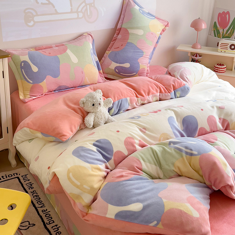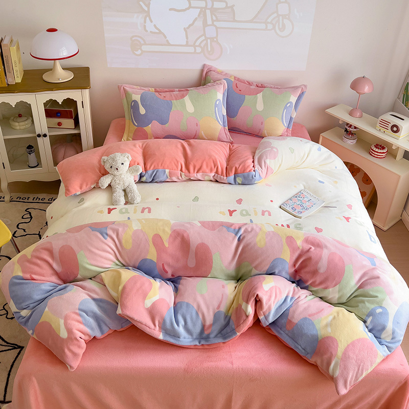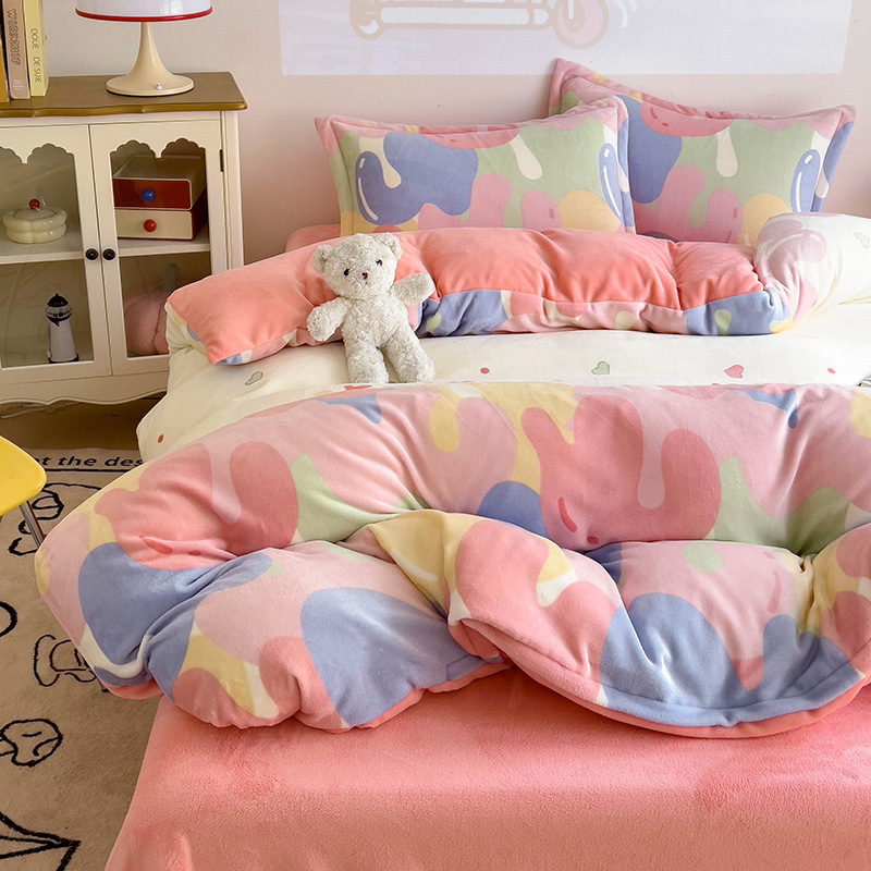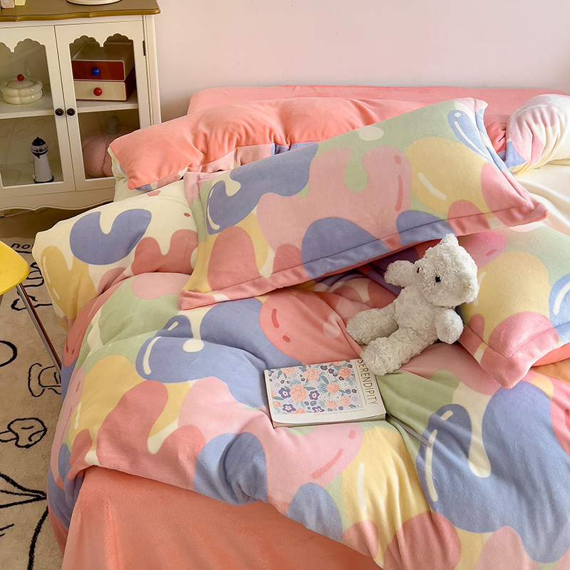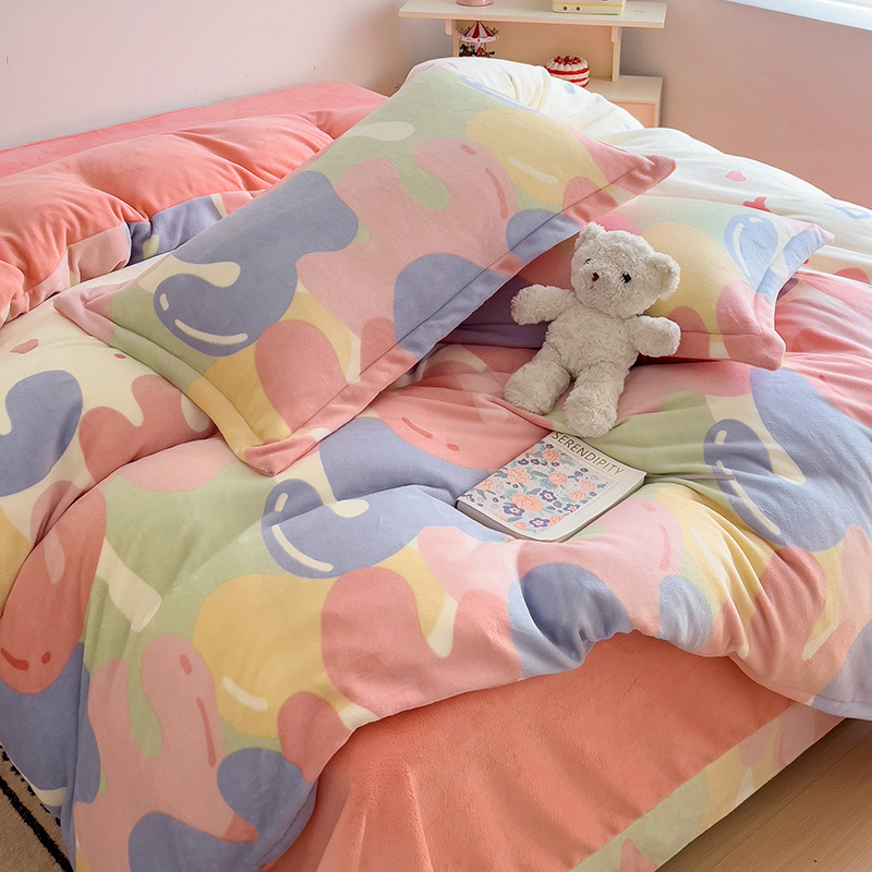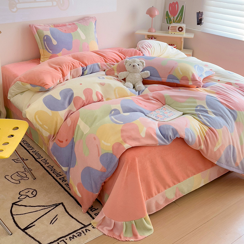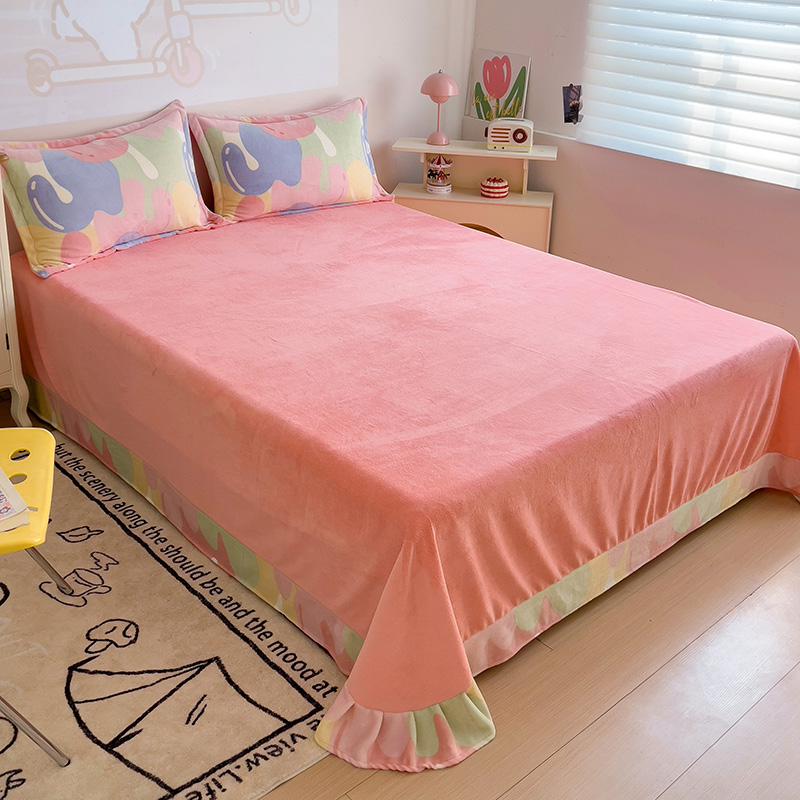 乐童家纺 2024新款跑量款牛奶绒床裙四件套 微笑冰激淋