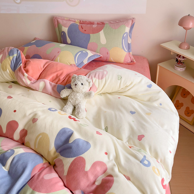 乐童2024新款吊边款牛奶绒四件套 爱意满满,爱意满满