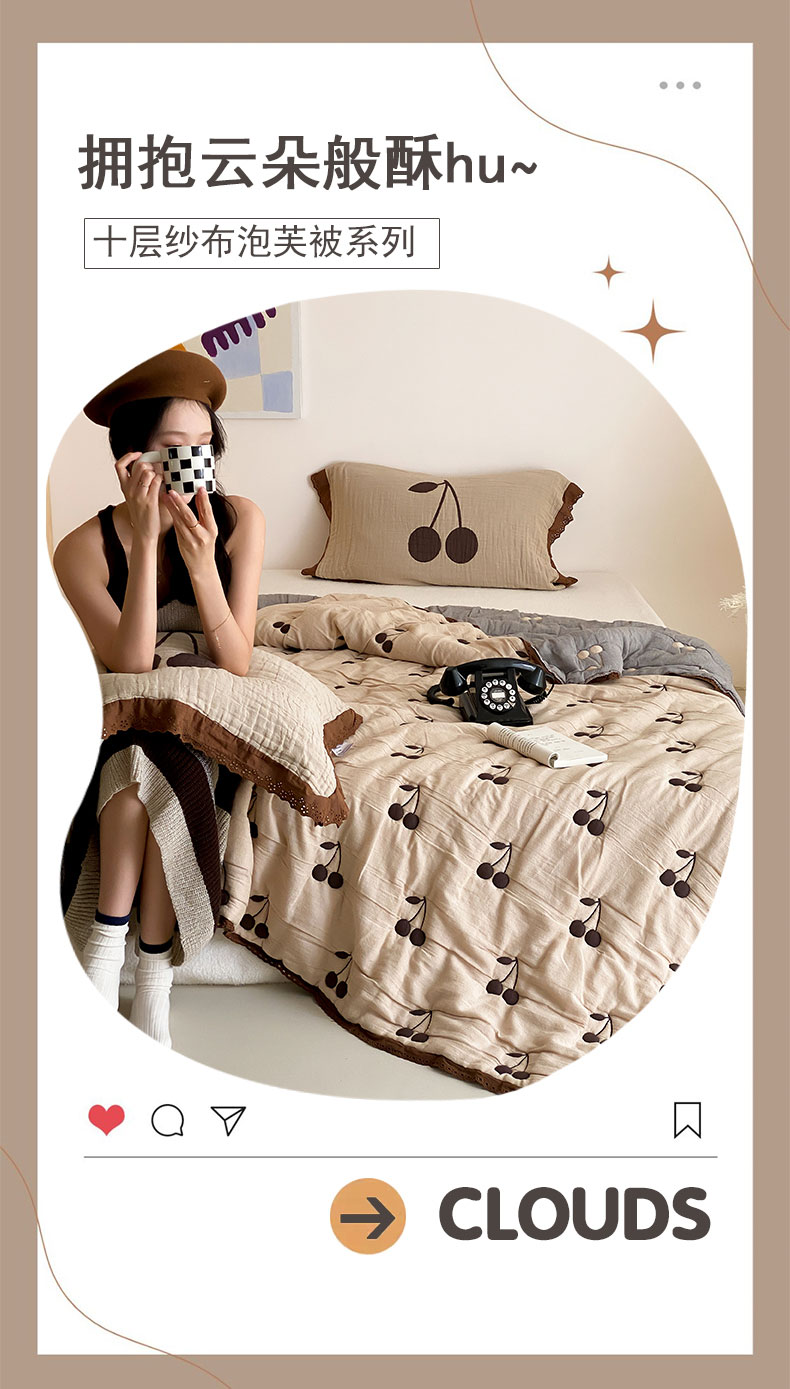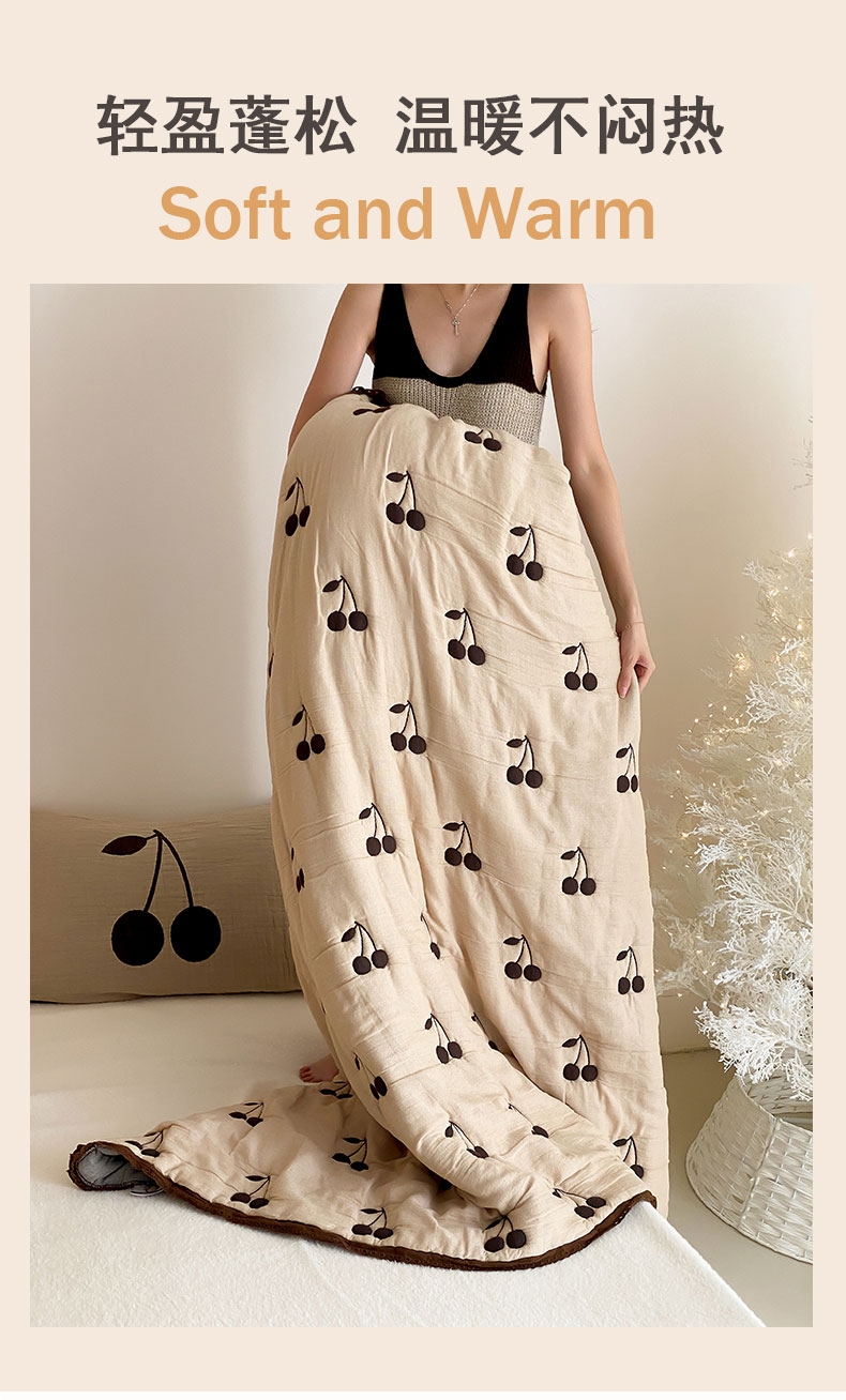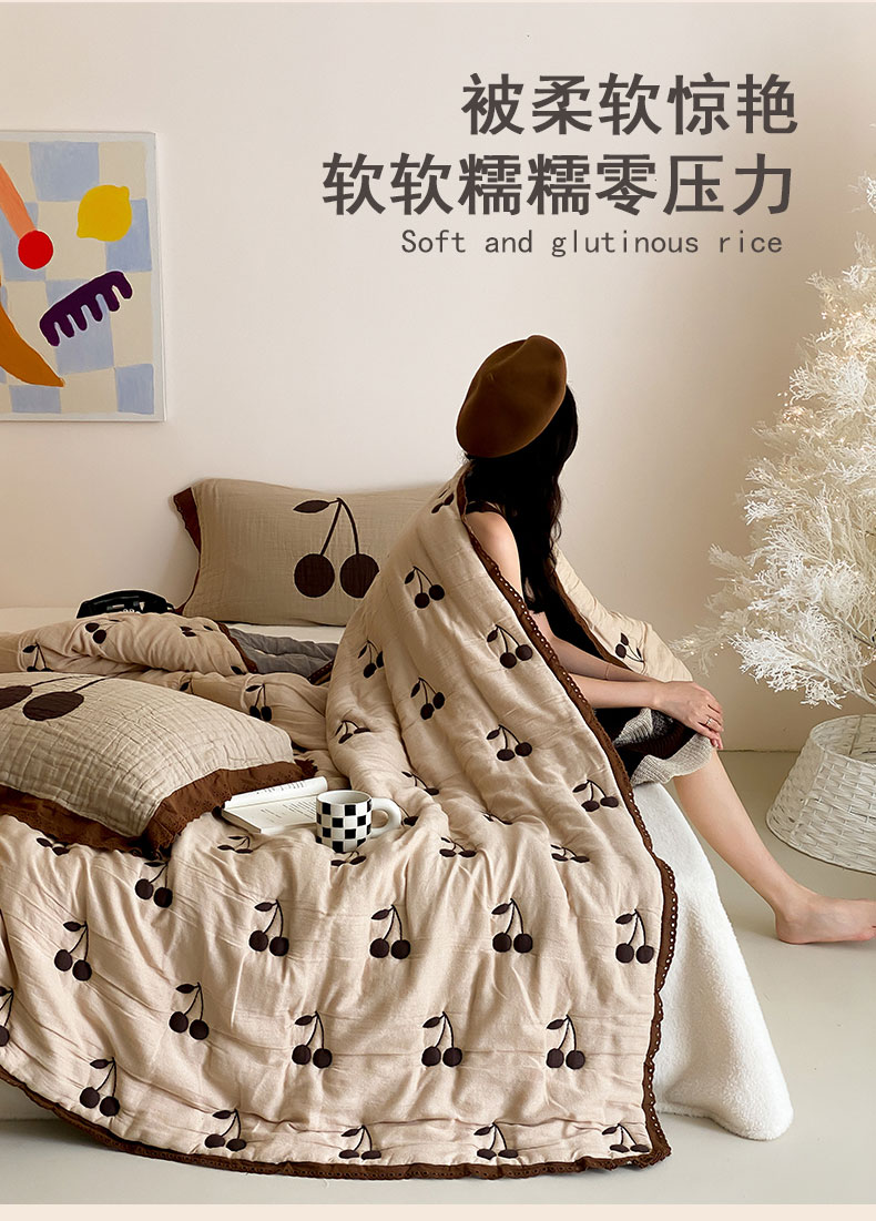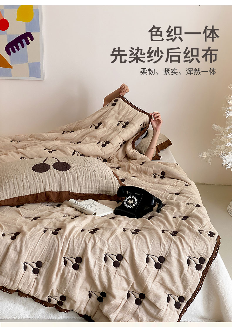 商品名称:麻依 2024新款十层纱布泡芙被纱布被子秋冬被 樱桃子墨