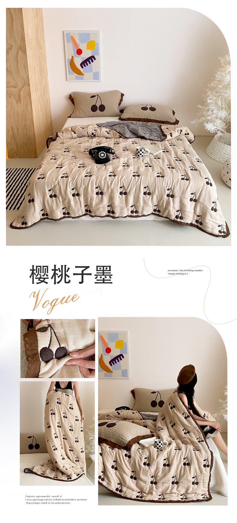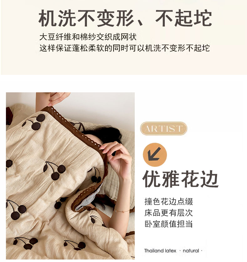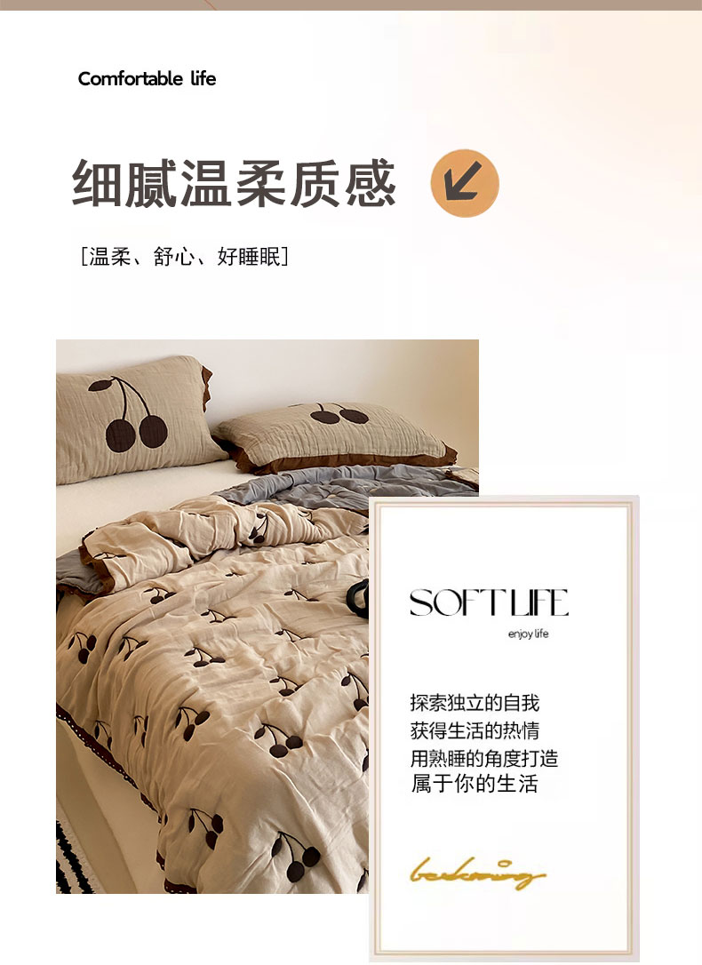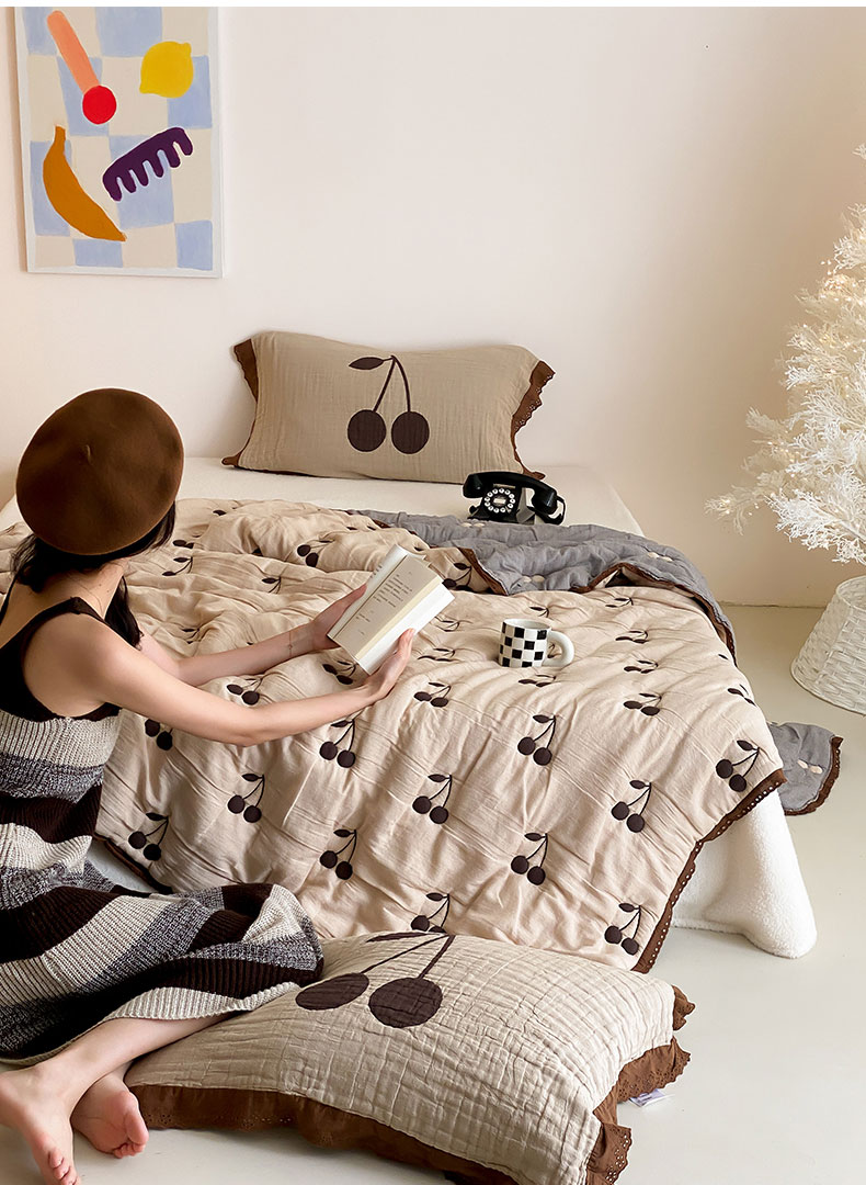 商品名称:麻依 2024新款十层纱布泡芙被纱布被子秋冬被 樱桃子墨