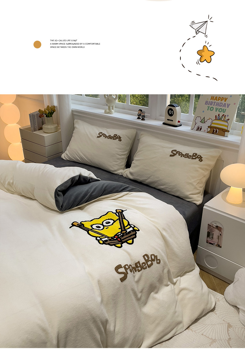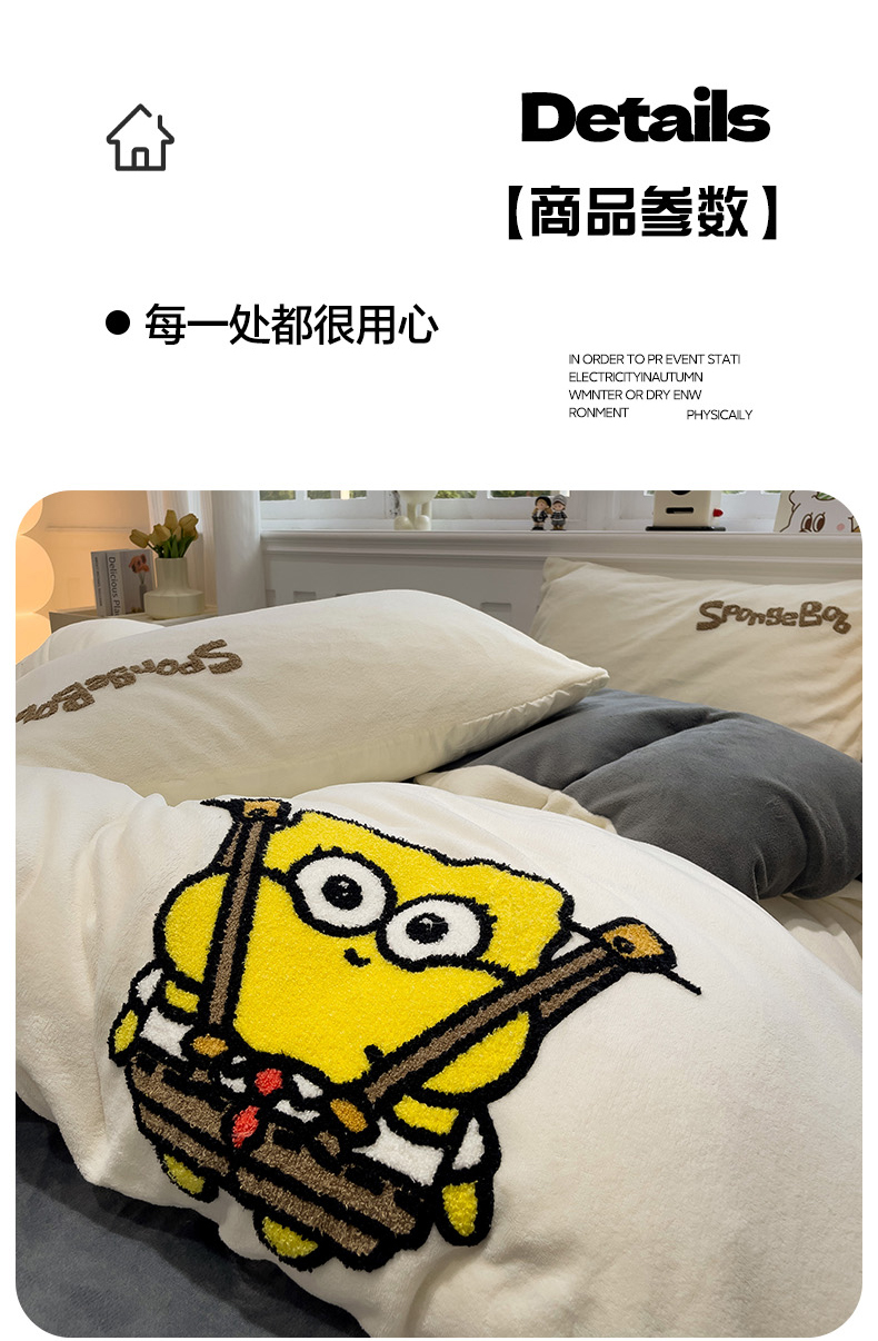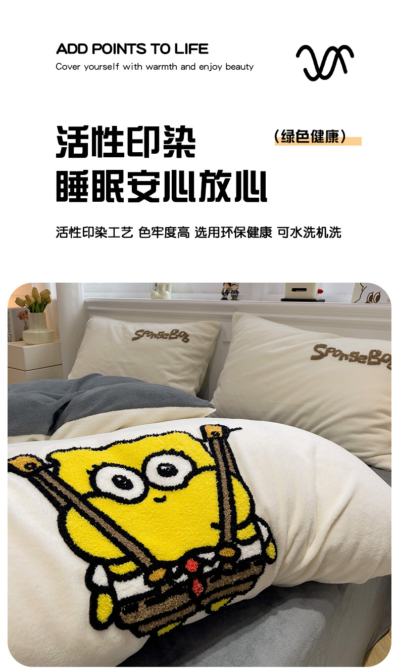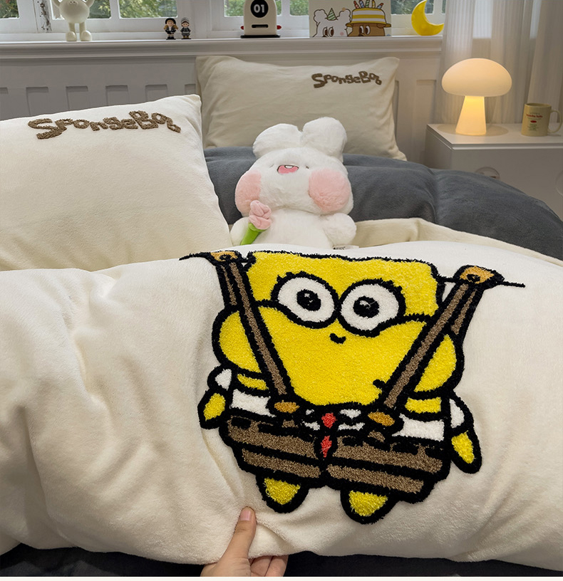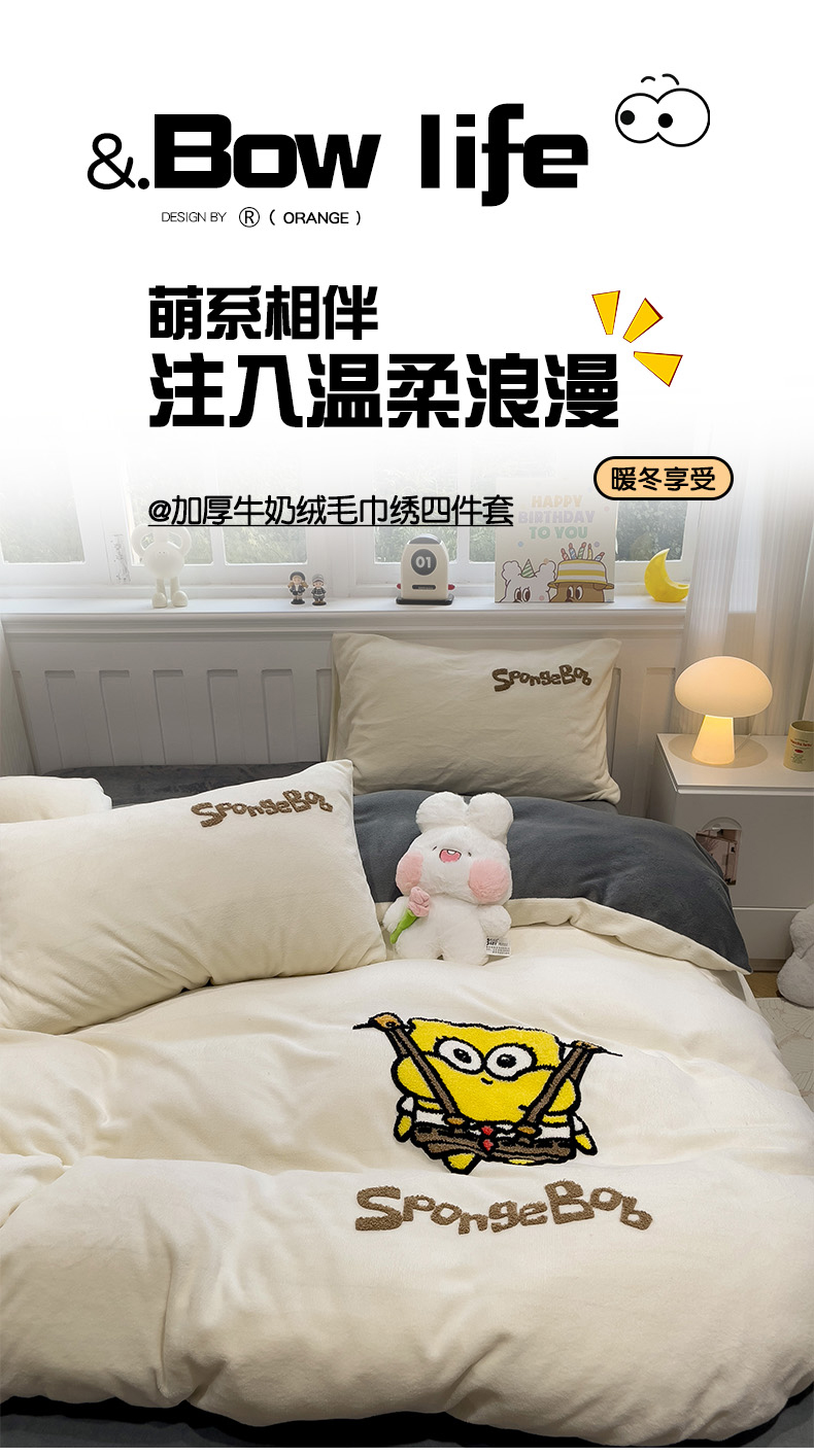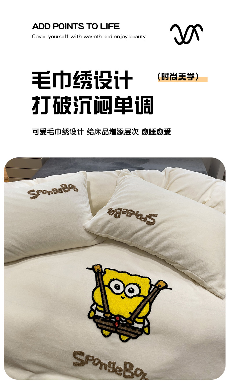 当前位置: 91家纺网 > 商品网购 > 床品套件 > 四件套 > 牛奶绒四件套 > 奈颜 2024新款加厚牛奶绒毛巾绣四件套 海绵宝宝