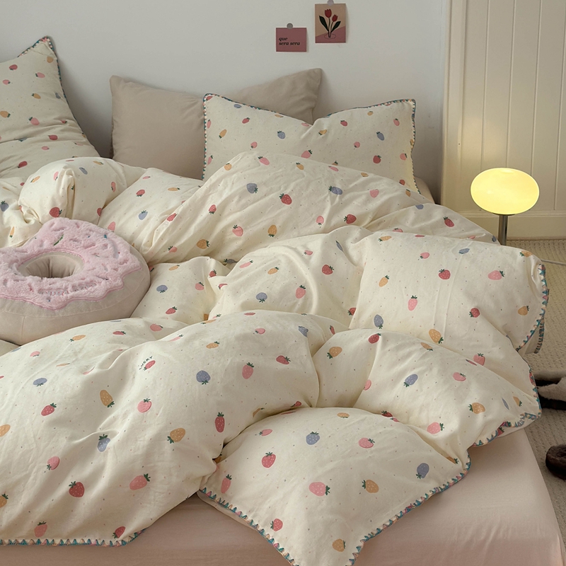 洋铭区(原狠狠爱) 2024新款新花全棉双层纱四件套 草莓公主