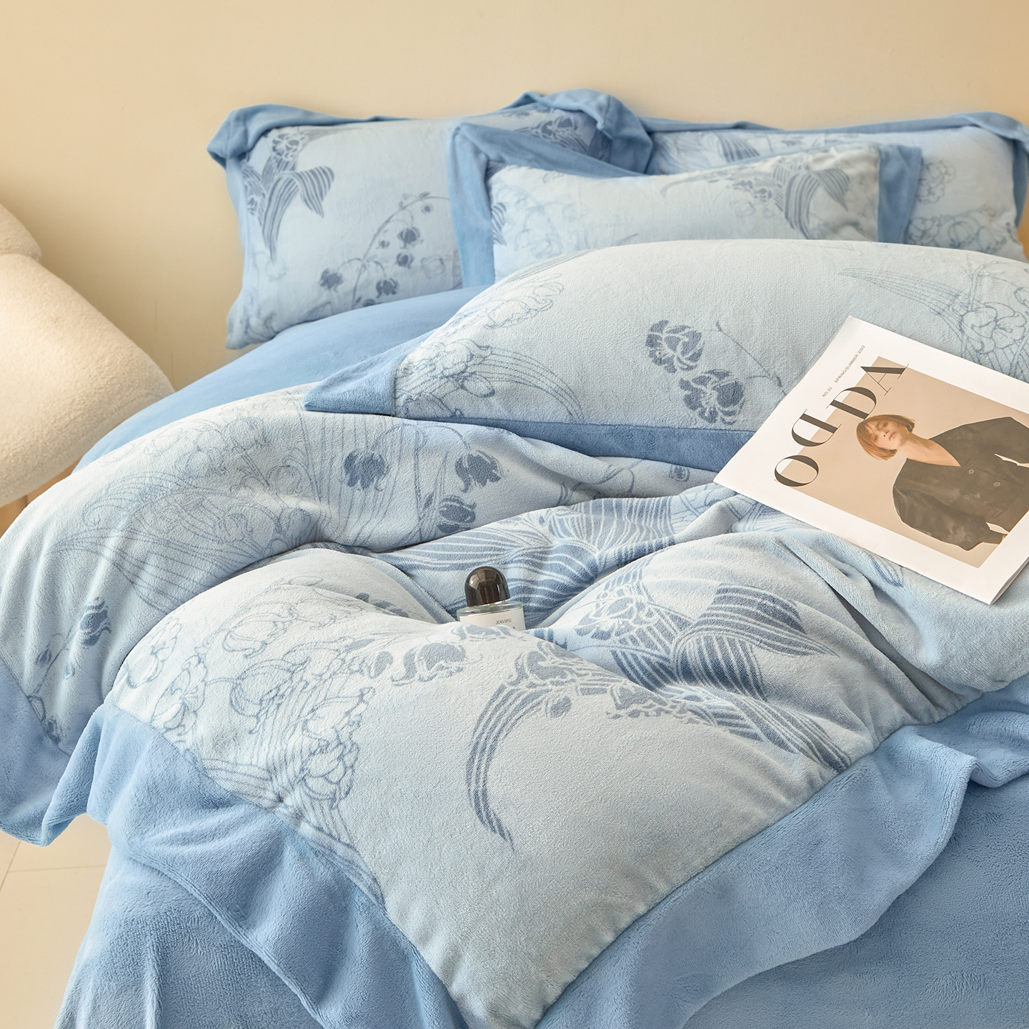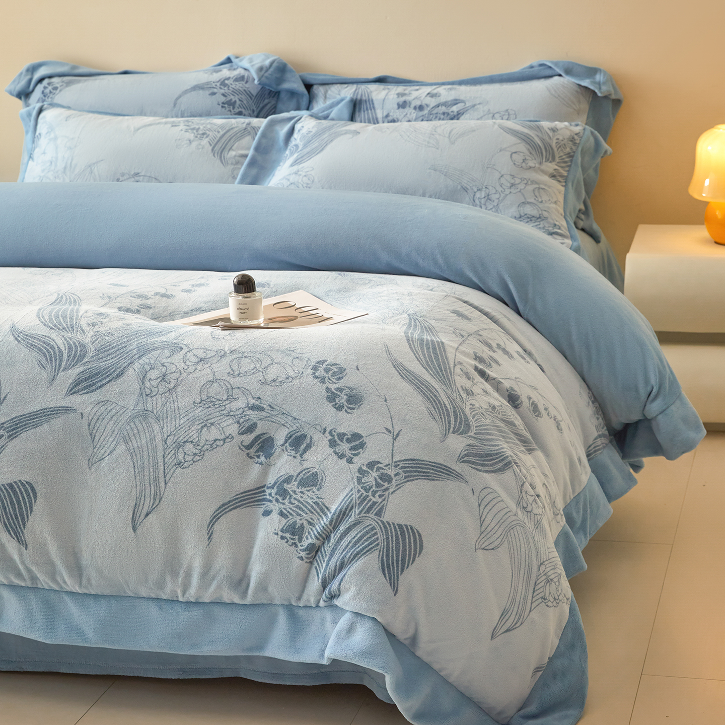商品名称:新方向 2025新款高克重240克A类全消光印花牛奶绒四件套-铃兰 铃兰-以太兰