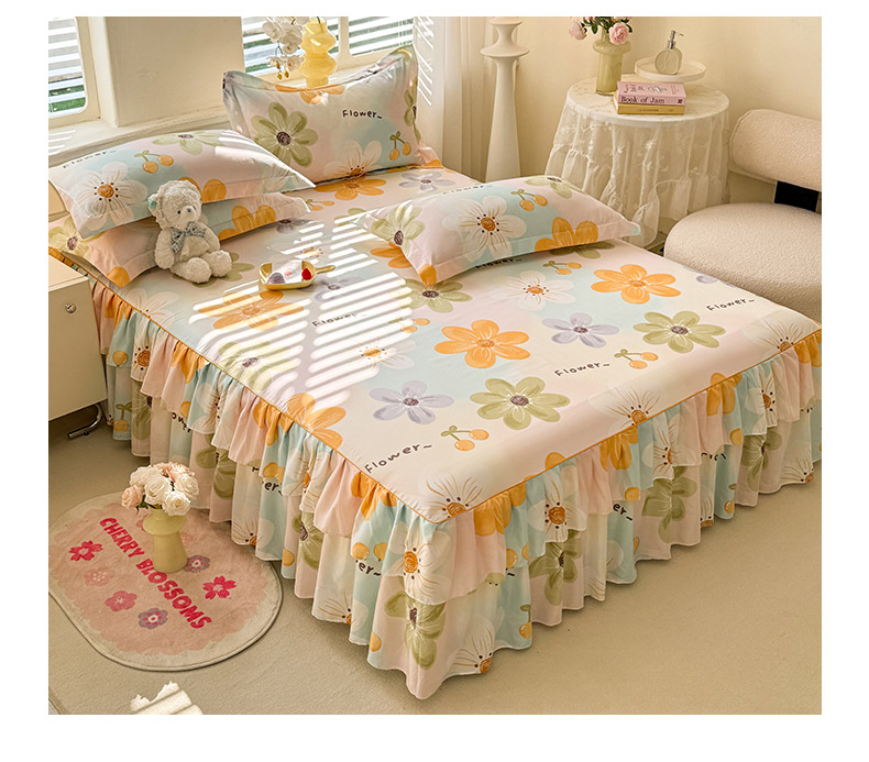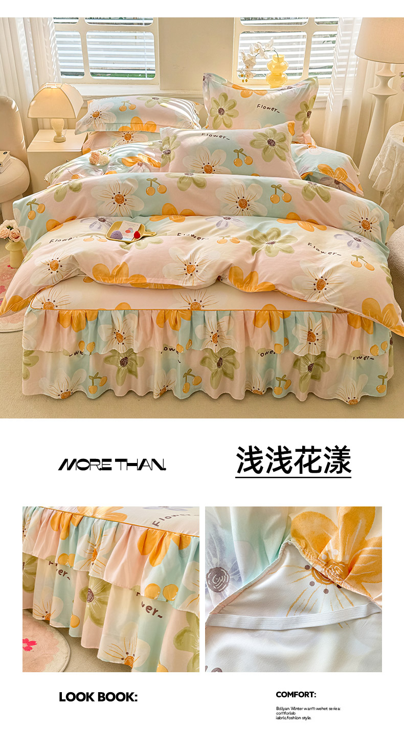 当前位置: 91家纺网 > 商品网购 > 床品套件 > 四件套 > 其它四件套 > 优家居 2025新款芦荟棉床裙四件套韩版公主风花边三件套双层边床罩床笠床单被套外贸直播爆款 浅浅花漾