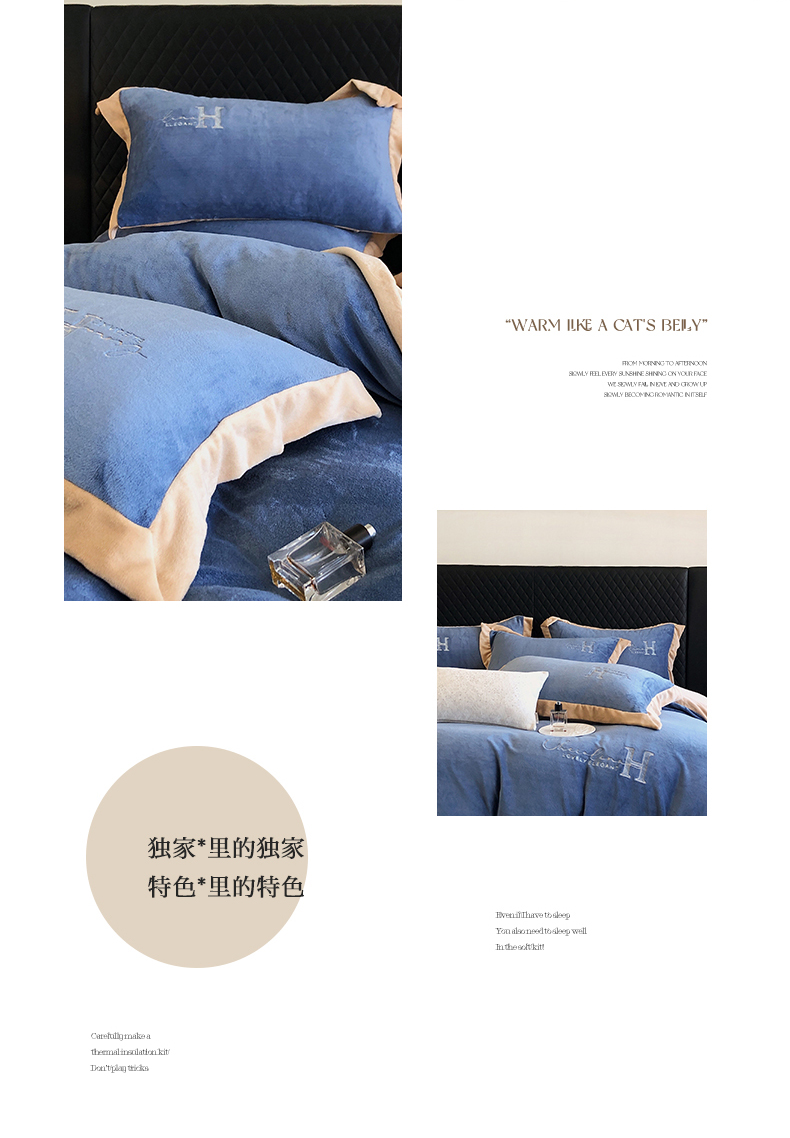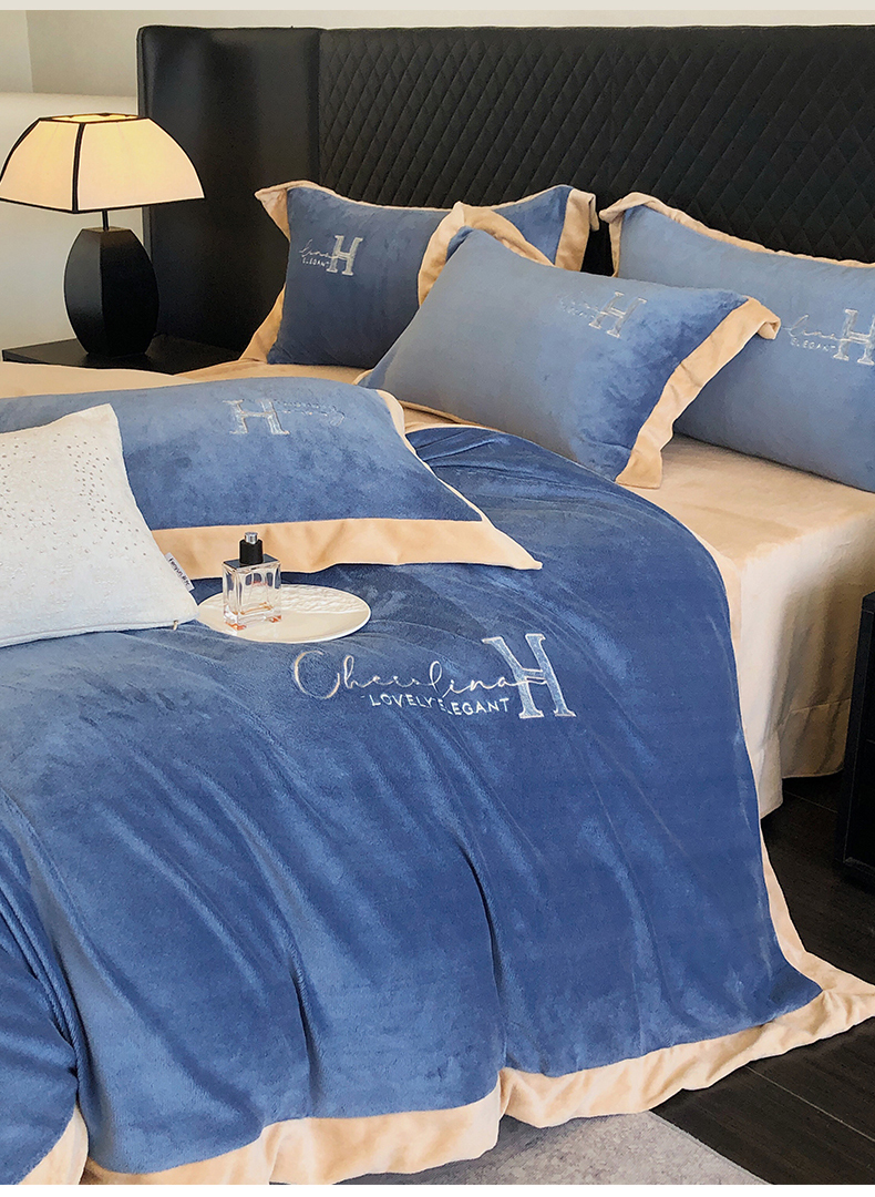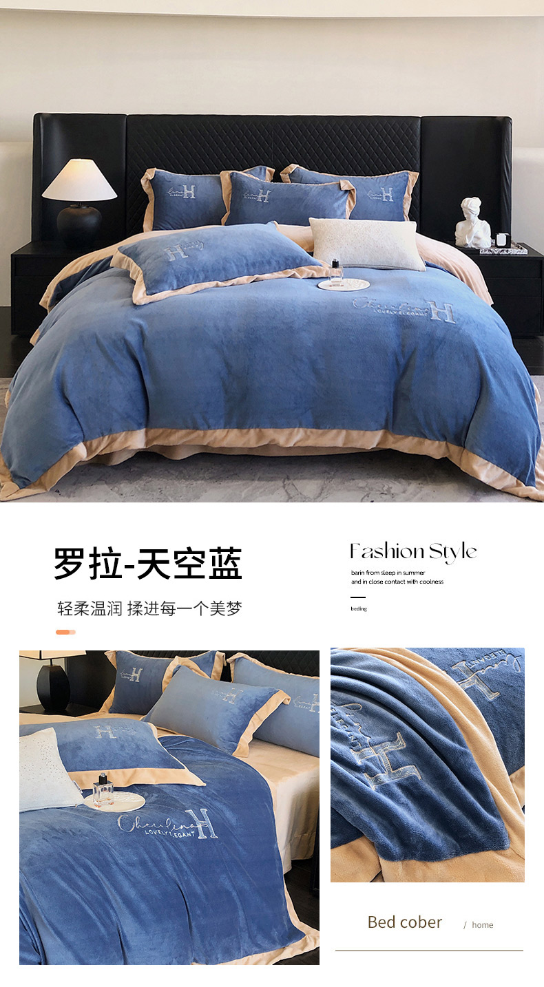 商品名称:保罗圣迪奥 2024新款牛奶绒刺绣四件套--罗拉 罗拉-天空蓝