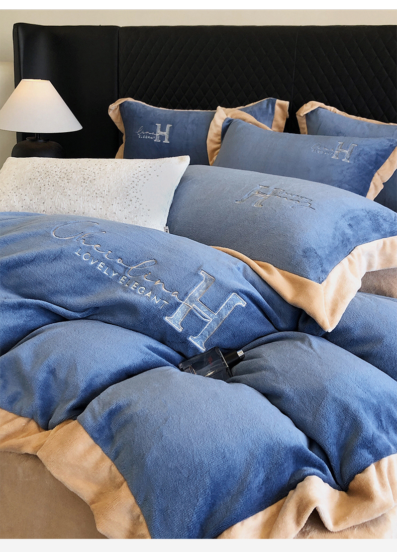 保罗圣迪奥 2024新款牛奶绒刺绣四件套--罗拉 罗拉-天空蓝