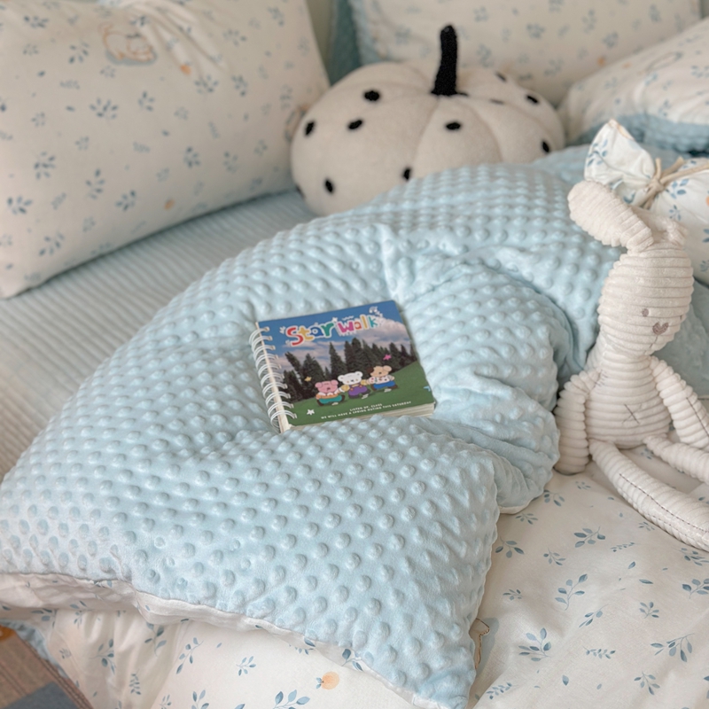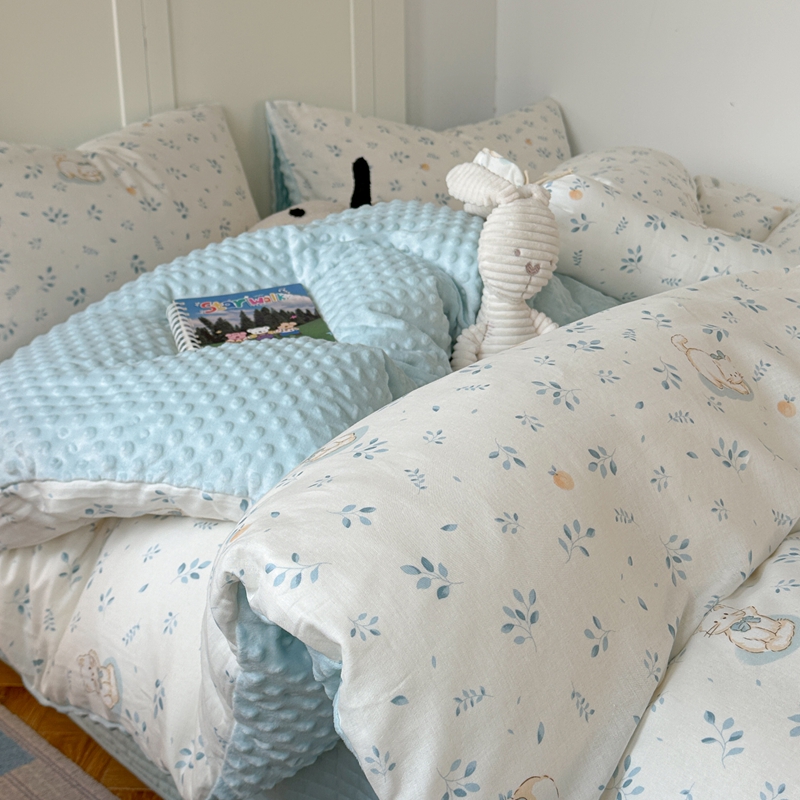 商品名称:柚子YOUTH 2024新款全棉双层纱豆豆婴儿绒床盖四件套 叶之猫