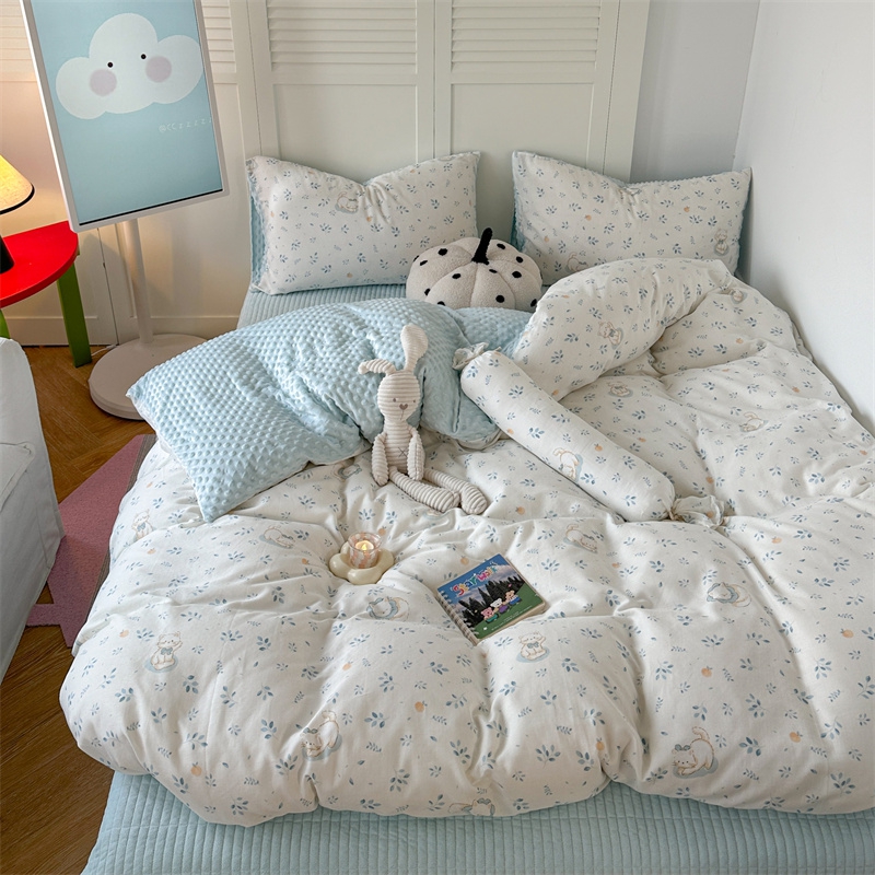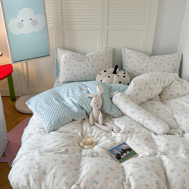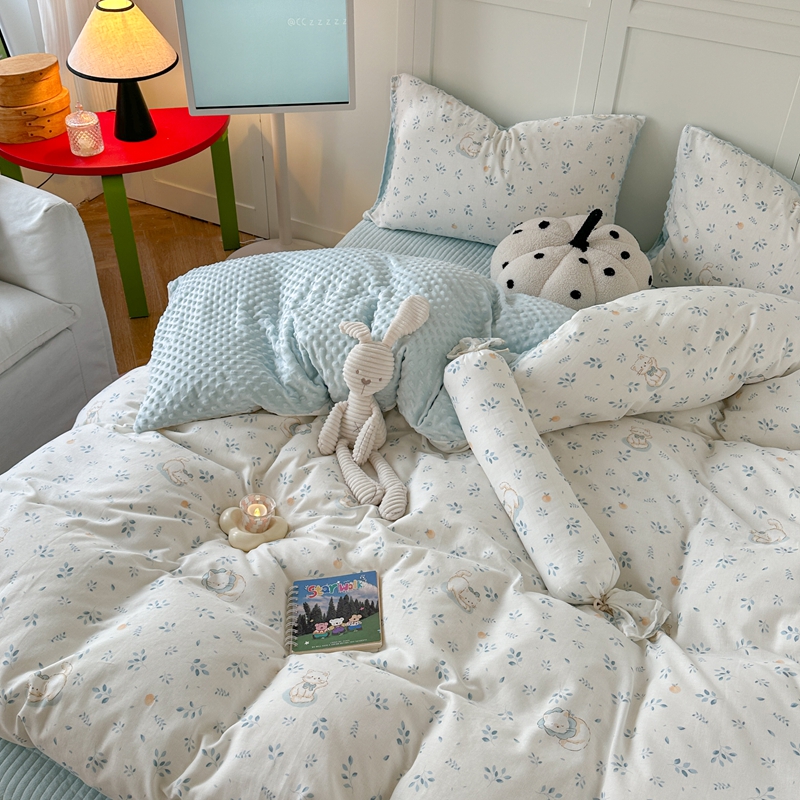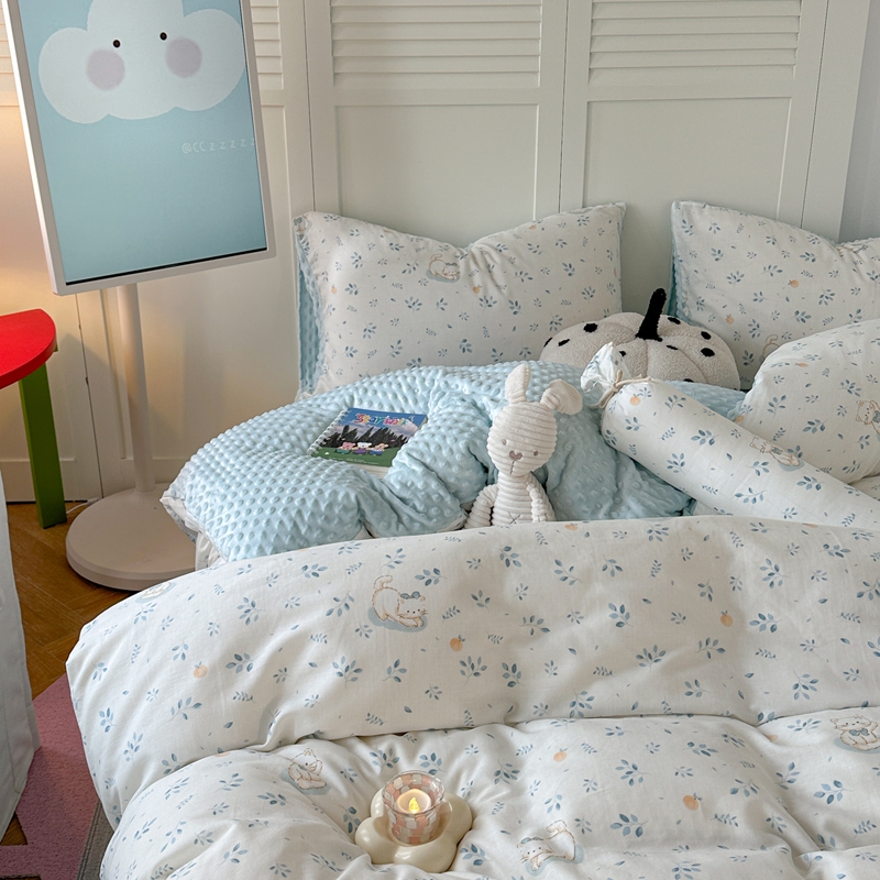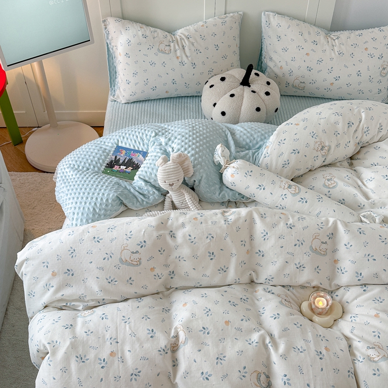 (总)柚子YOUTH 225新款全棉双层纱球球款四件套,薄荷绿条,波点霉霉,波点小丑,蓝心,芊芊结,碎花点点