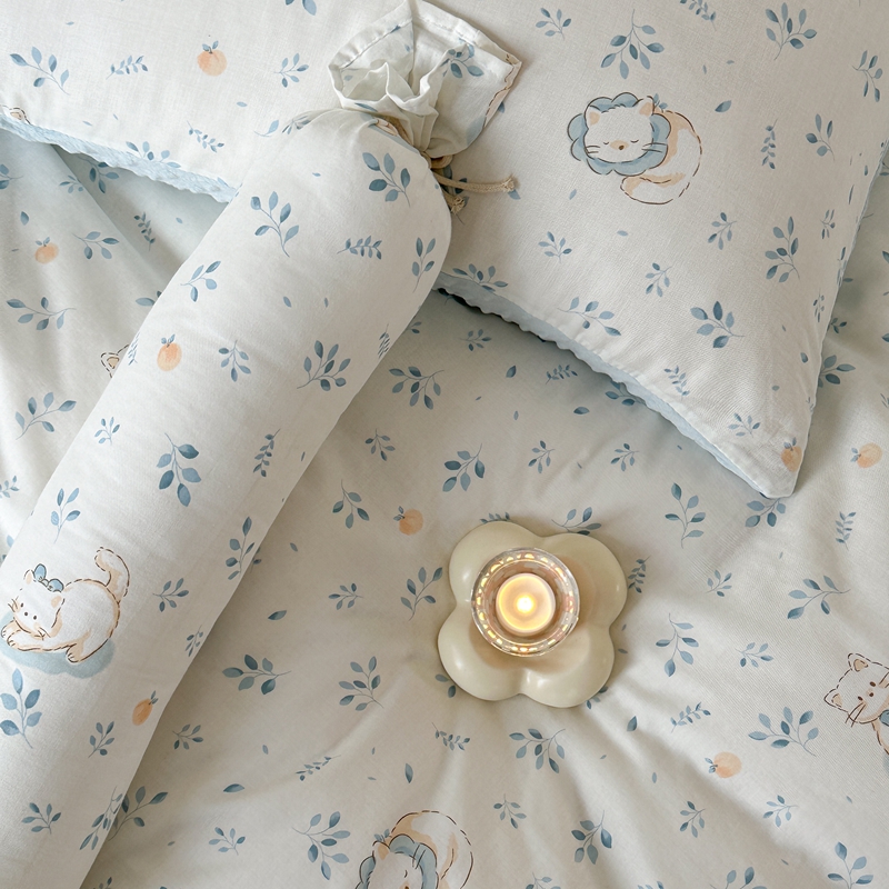 柚子YOUTH 2024新款全棉双层纱豆豆婴儿绒床盖四件套 叶之猫