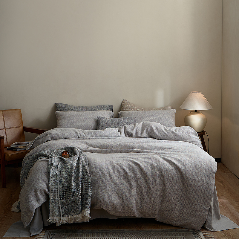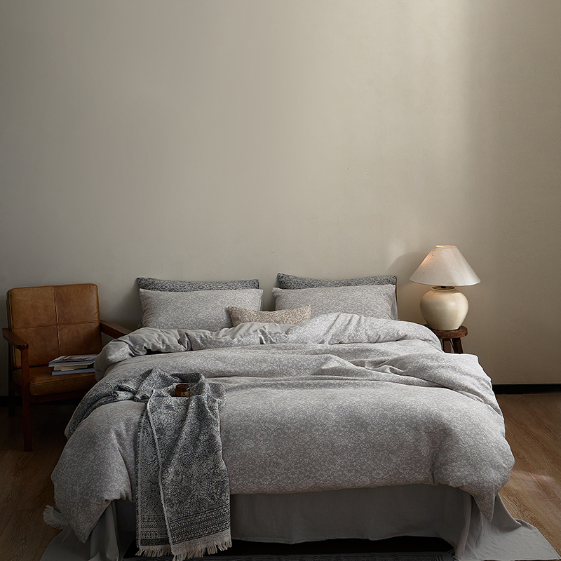 (总)子和家居 2025新款全棉麻感棉花朵款四件套-场景1,麻感棉花朵款四件套