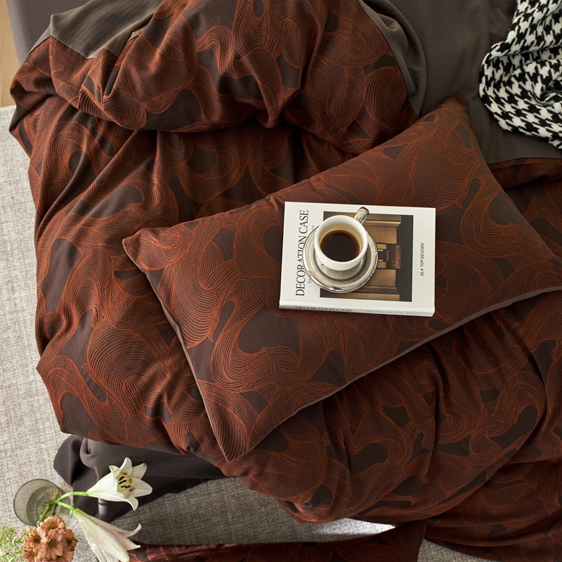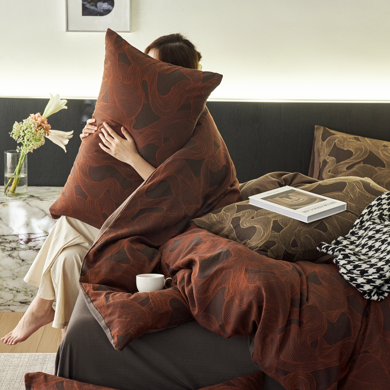 (总)简家居2025新款40支全棉色织空气棉四件套-鎏金喜韵,鎏金喜韵