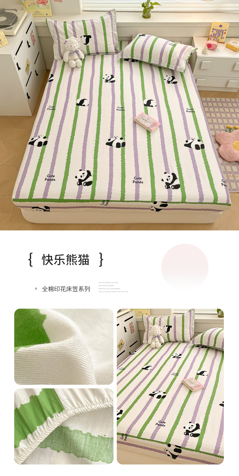 A类母婴级卡通花卉儿童纯棉全棉床单纯棉全棉床笠全棉纯棉床单全棉纯棉床笠三件套 快乐熊猫