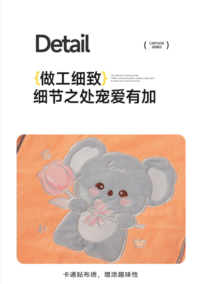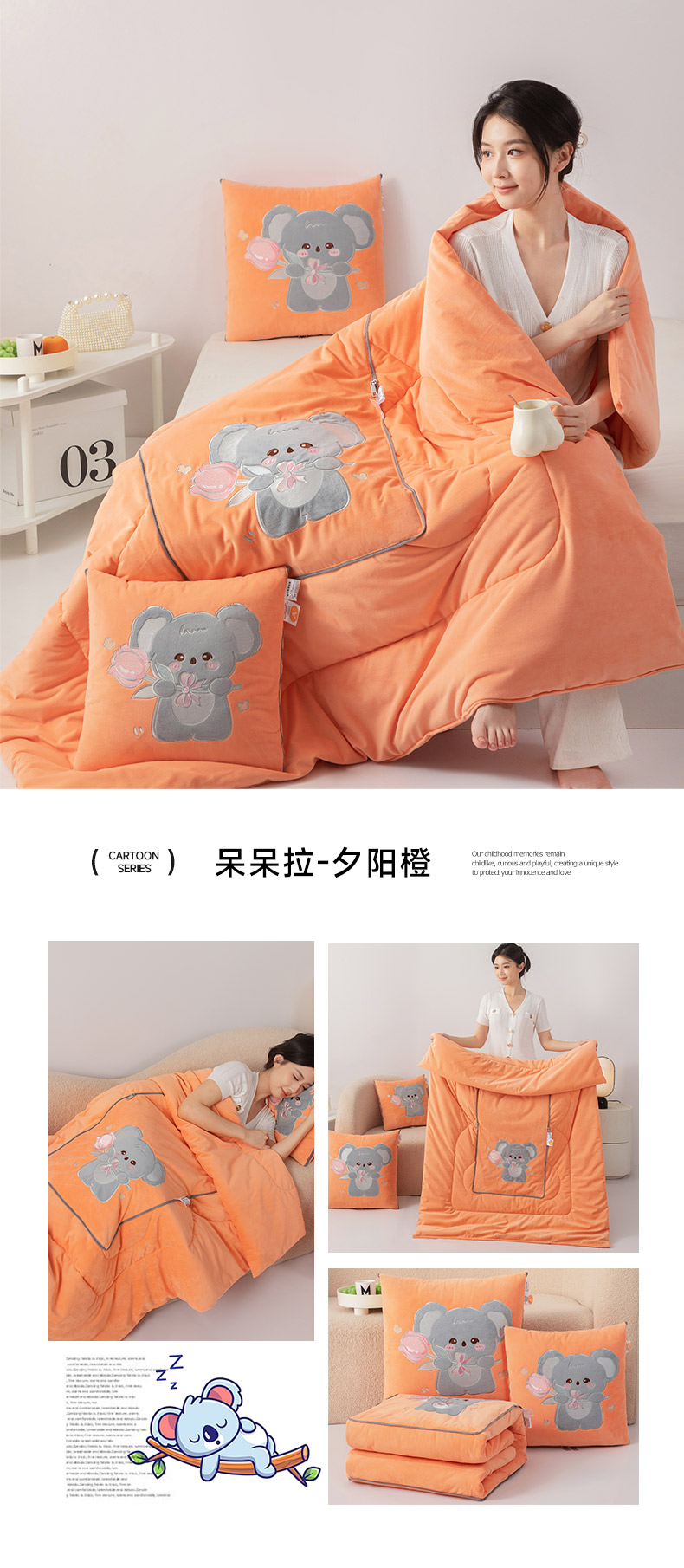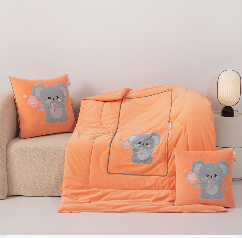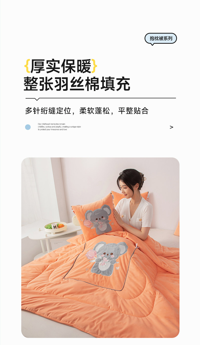 商品名称:雷人家纺 2024新款A类加厚加重贴布绣婴儿绒抱枕被 呆呆拉-夕阳橙