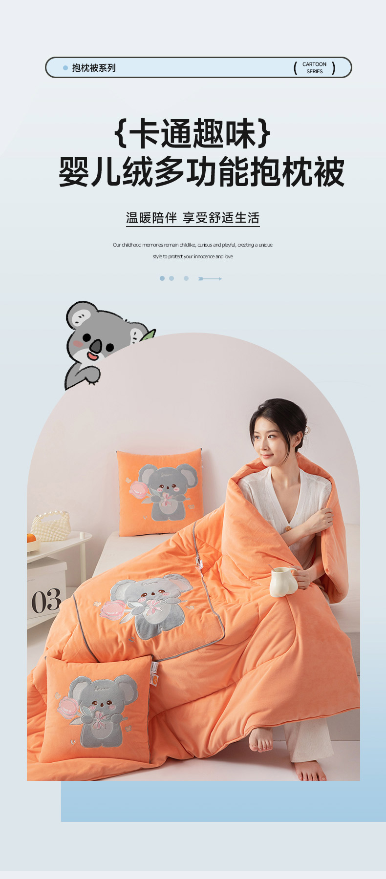 (总)雷人家纺 2024新款多功能印花宝宝绒抱枕被,财运亨通,大吉大利,好运锦鲤,加倍快乐-粉,喜事连连,一帆风顺,一飞冲天,一夜暴富,有勇有谋,蒸蒸日上