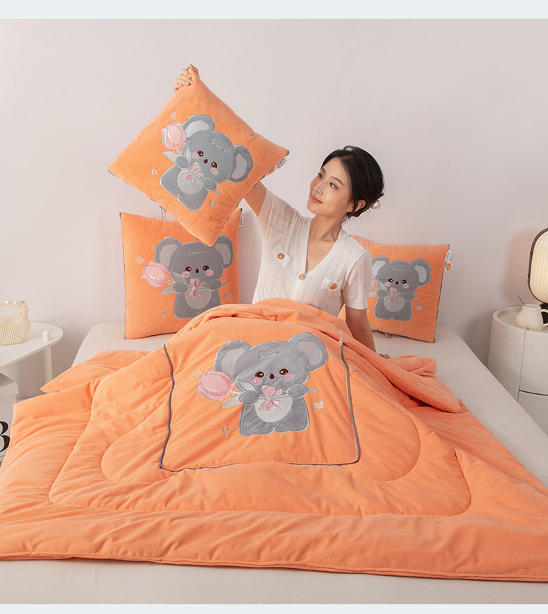(总)雷人家纺 2024新款A类加厚加重贴布绣牛奶绒抱枕被,可爱小鸭海蓝色,可爱小鸭橘红色,可爱小鸭浅棕黄,可爱小鸭深褐色,可爱小鸭桃粉色,柿柿如意果绿色,柿柿如意灰粉色,柿柿如意香槟色,柿柿如意星光灰