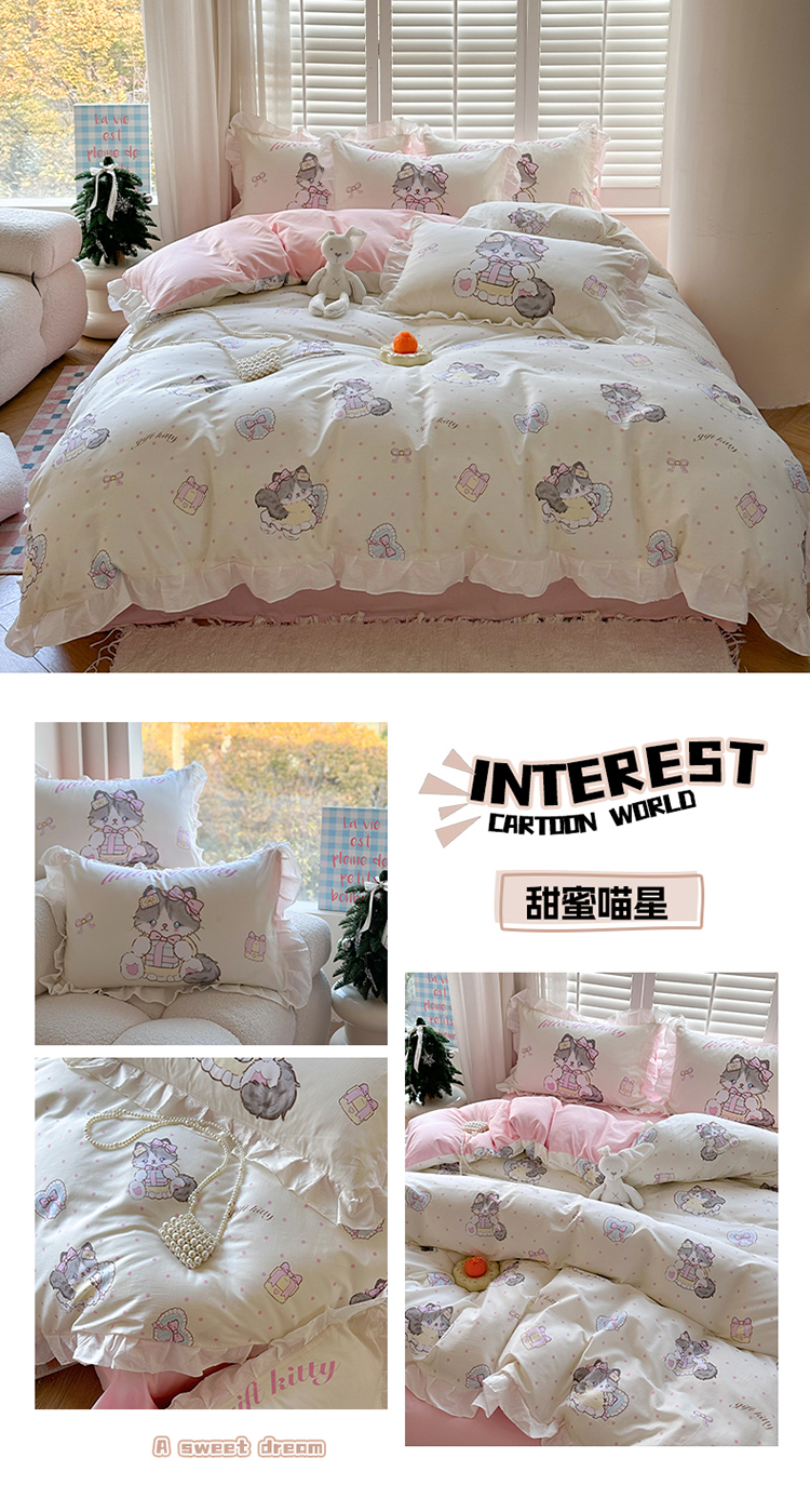 2025新款洛丽塔全棉花边四件套 甜蜜喵星