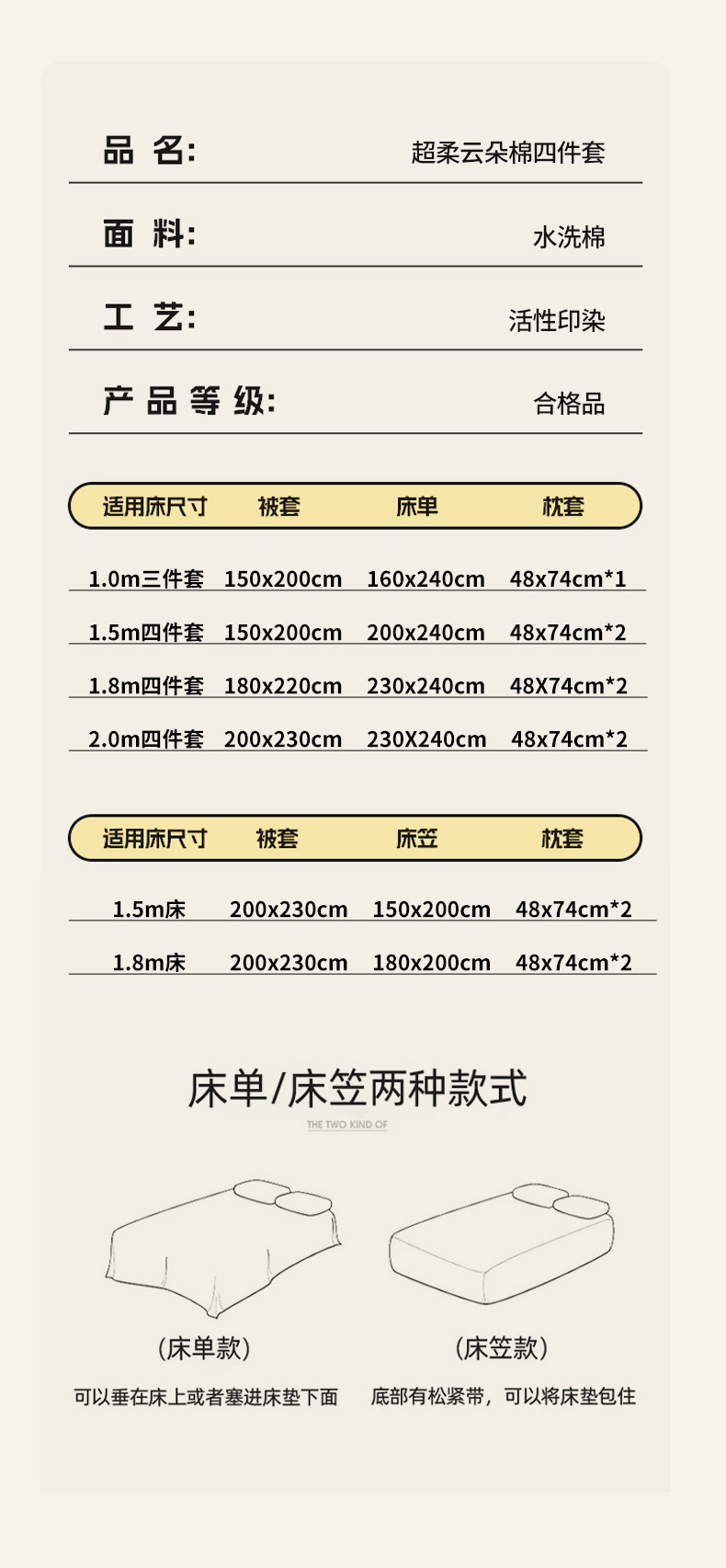 1.5m床笠款四件套-被套:200cm*230cm | ¥65.00 |