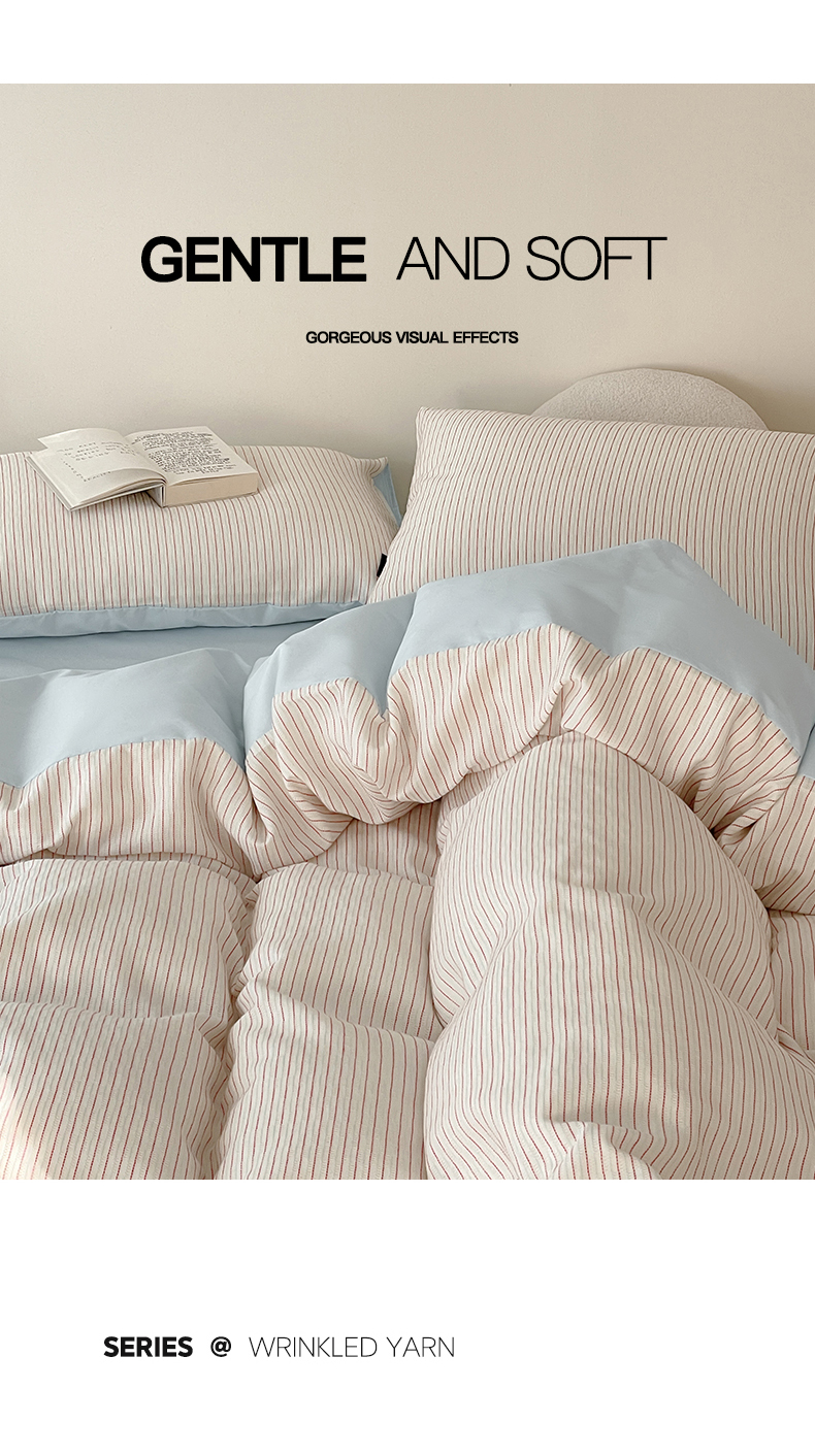 商品名称:卧趣家纺 2025新款A类全棉华夫格色织多色提花纯棉四件套-森韵 森韵·碎冰蓝