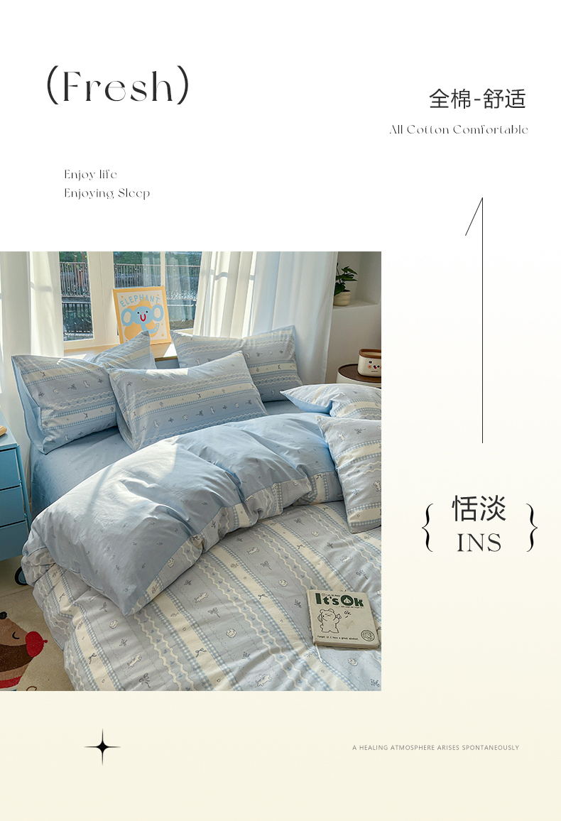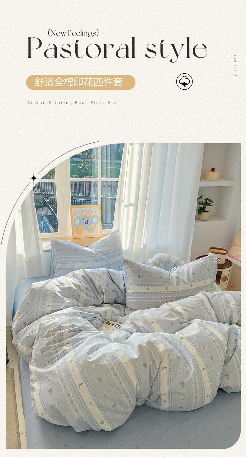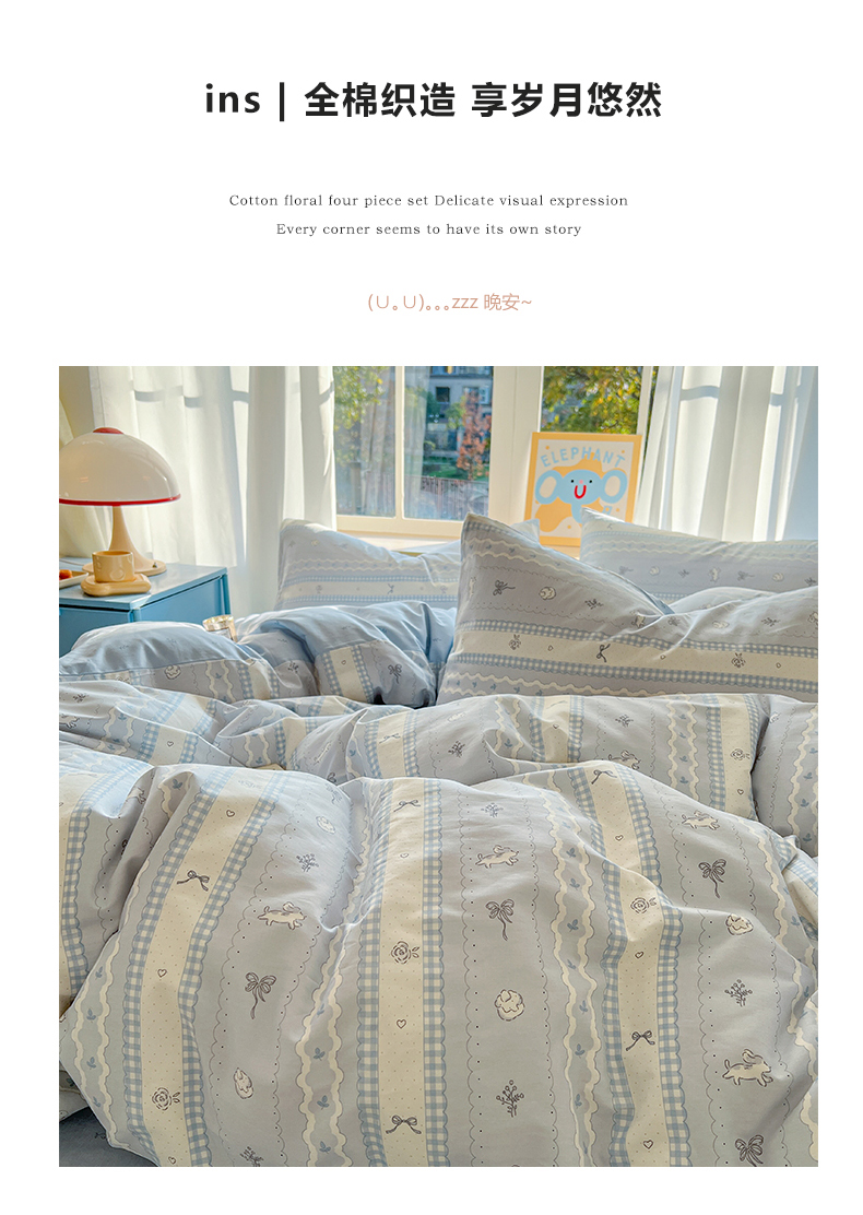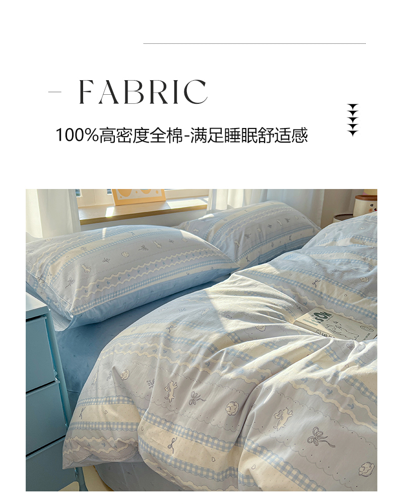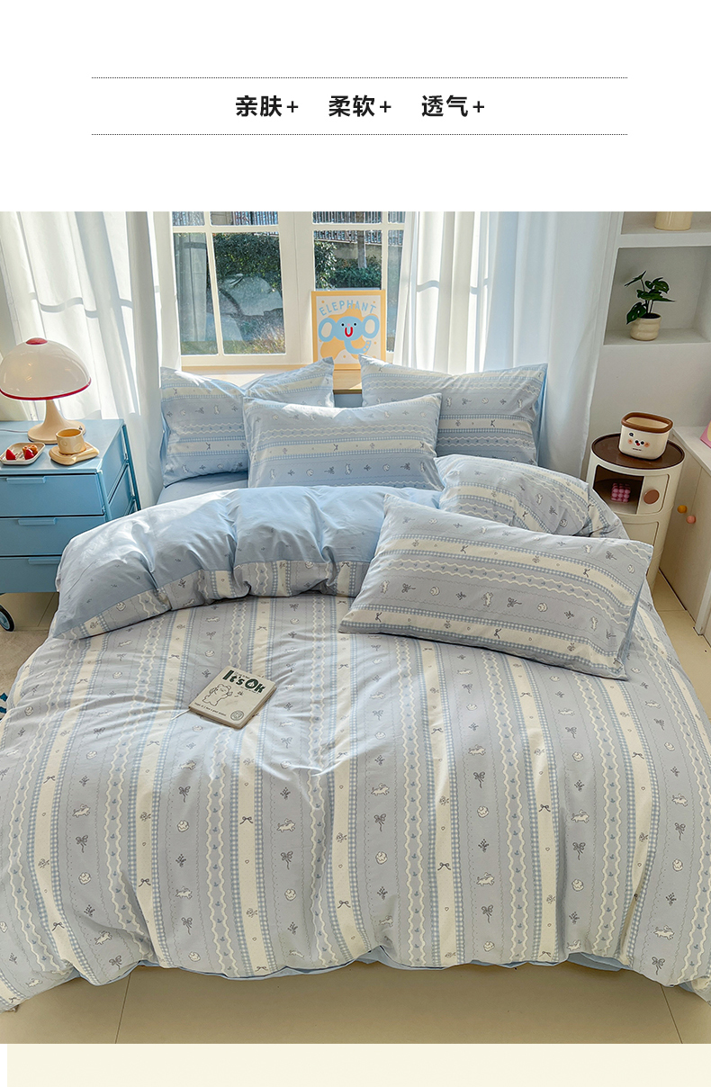 (总)捌月 2023新款13372全棉四件套竖纹印花系列,草莓园,兔小姐,小兰花,小甜心