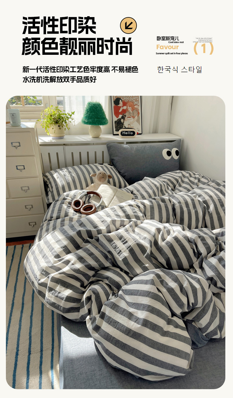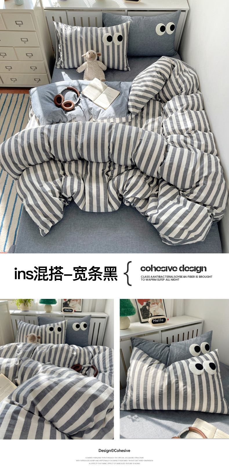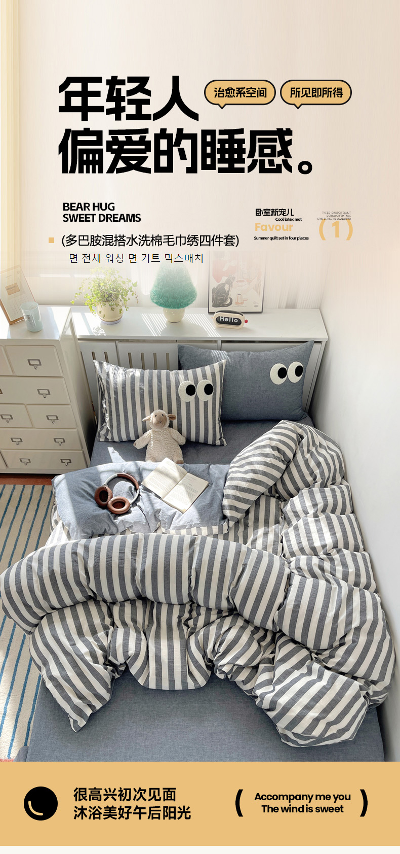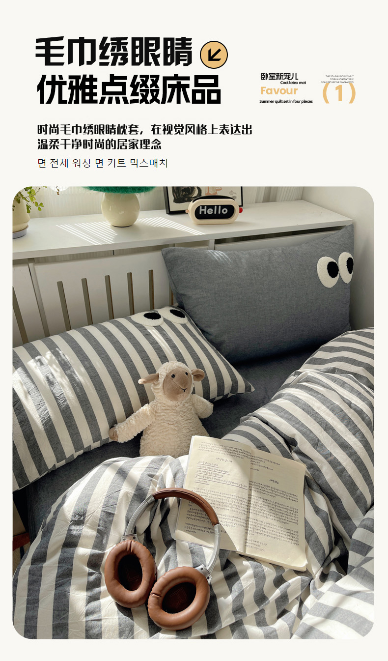 当前位置: 91家纺网 > 商品网购 > 床品套件 > 四件套 > 全棉普通四件套 > 丽涵家纺 2025新品全棉多巴胺混搭水洗棉毛巾绣四件套 ins混搭4-宽条黑