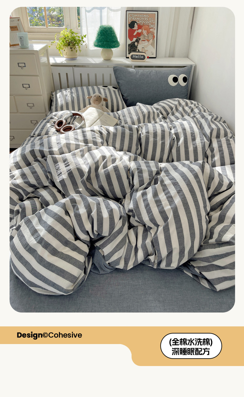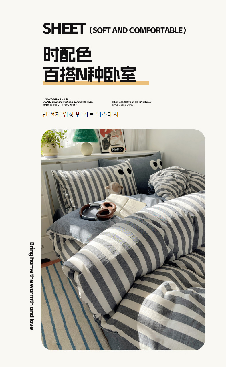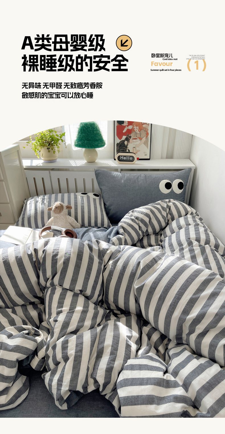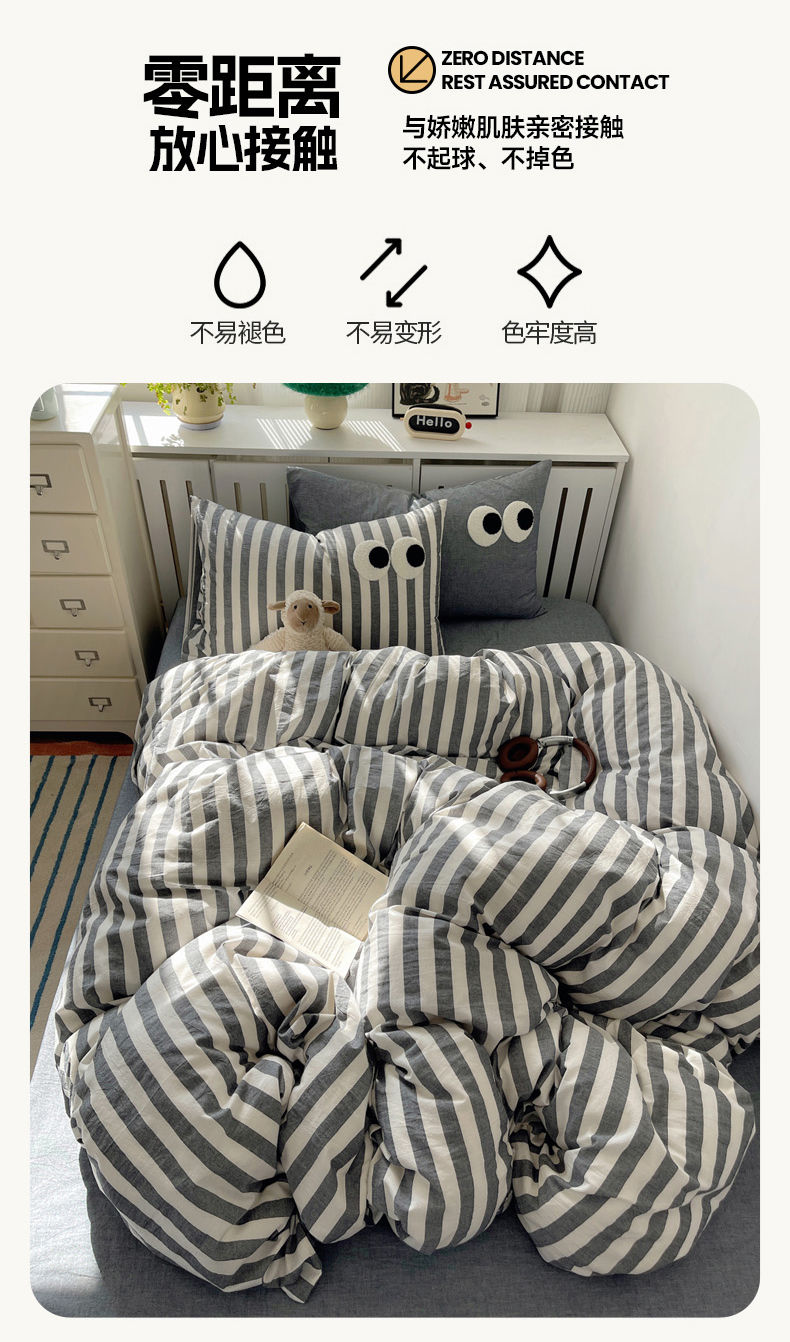 当前位置: 91家纺网 > 商品网购 > 床品套件 > 四件套 > 全棉普通四件套 > 丽涵家纺 2025新品全棉多巴胺混搭水洗棉毛巾绣四件套 ins混搭4-宽条黑