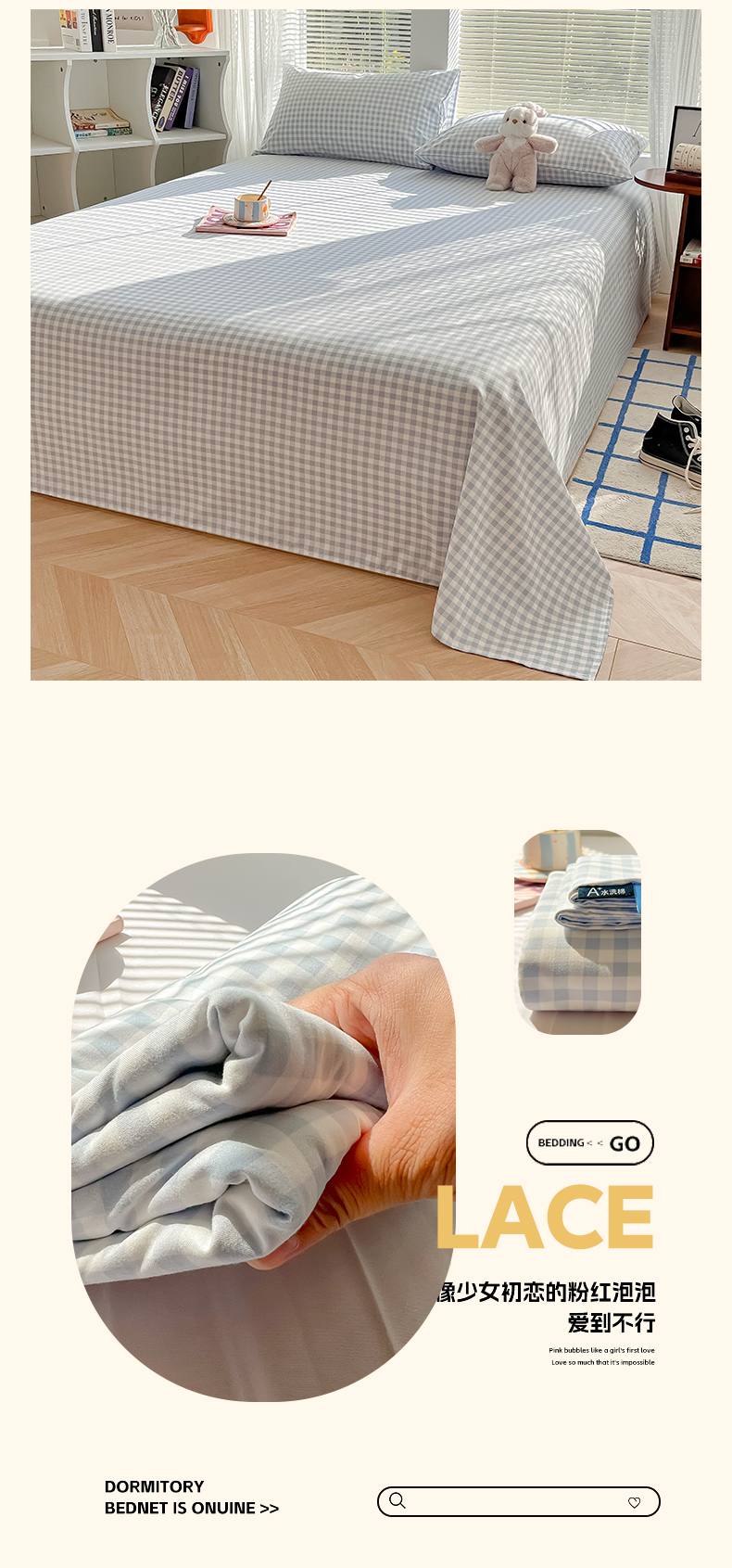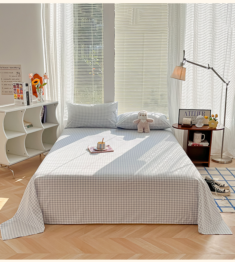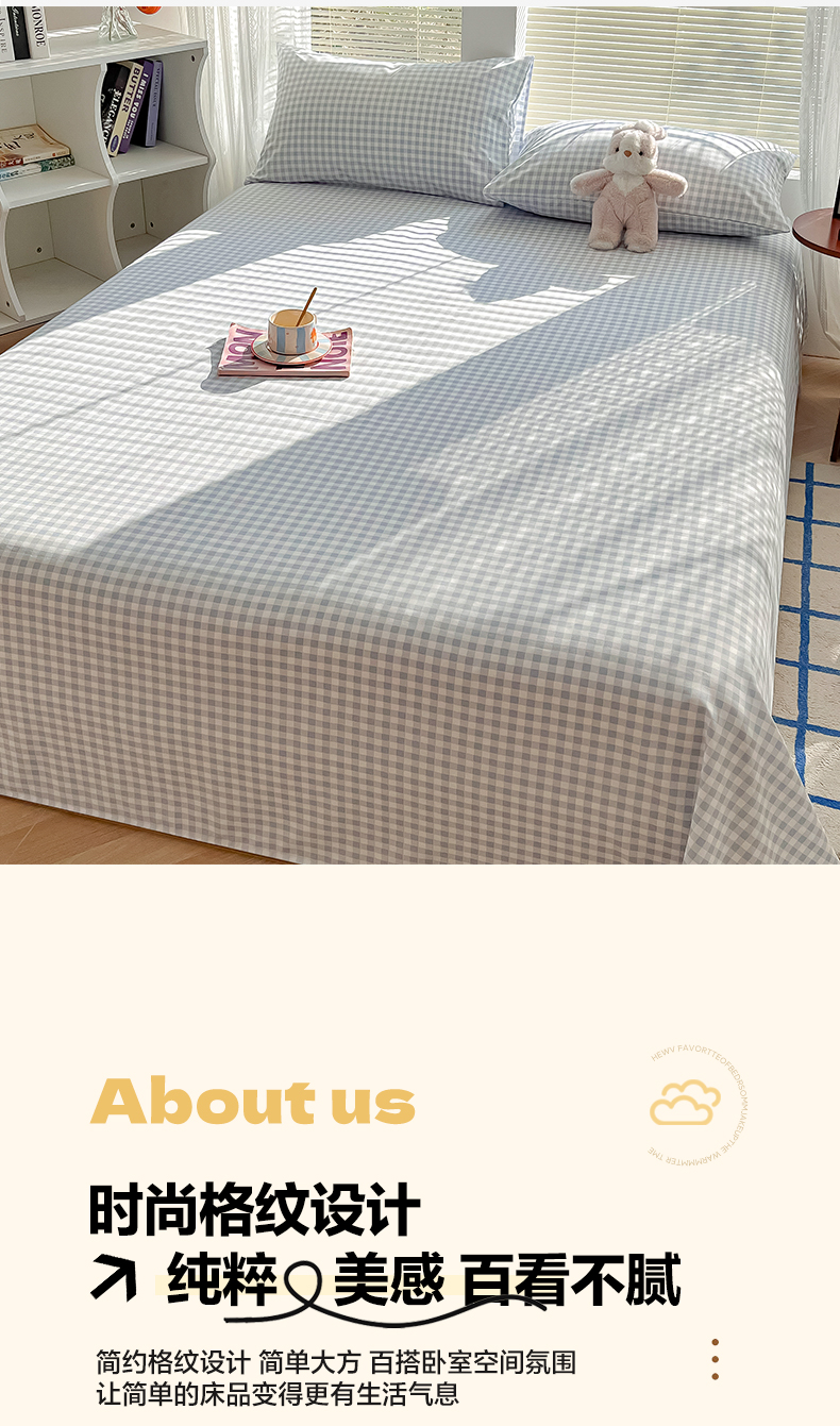 韩巢家纺 2025新款格子纯色A类水洗棉床单单件 浅蓝格