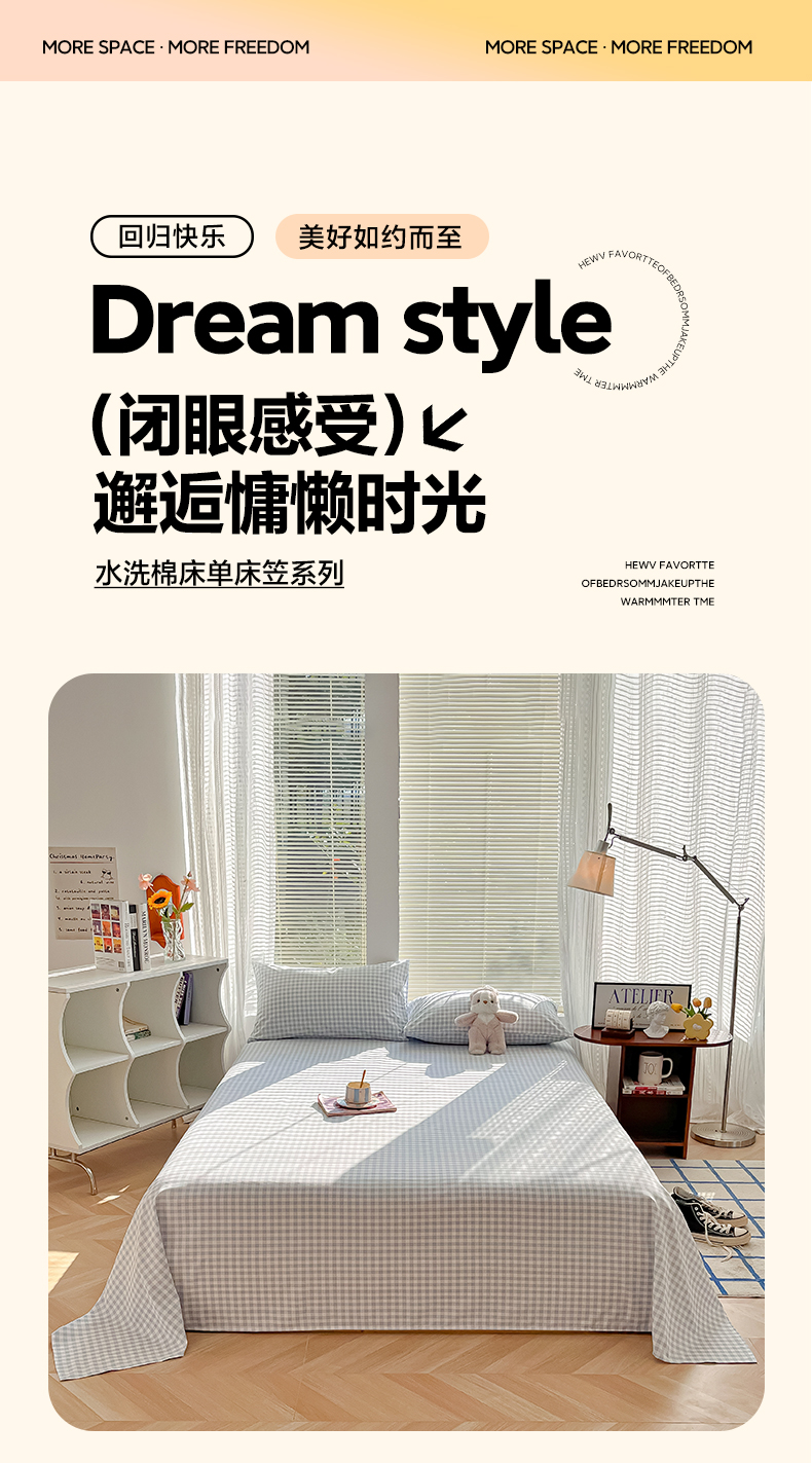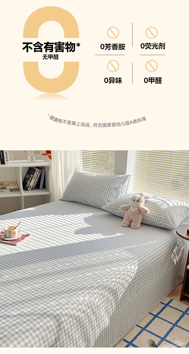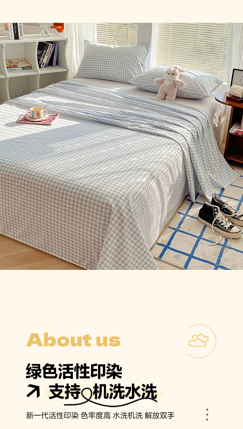 韩巢家纺 2025新款格子纯色A类水洗棉床单单件 浅蓝格