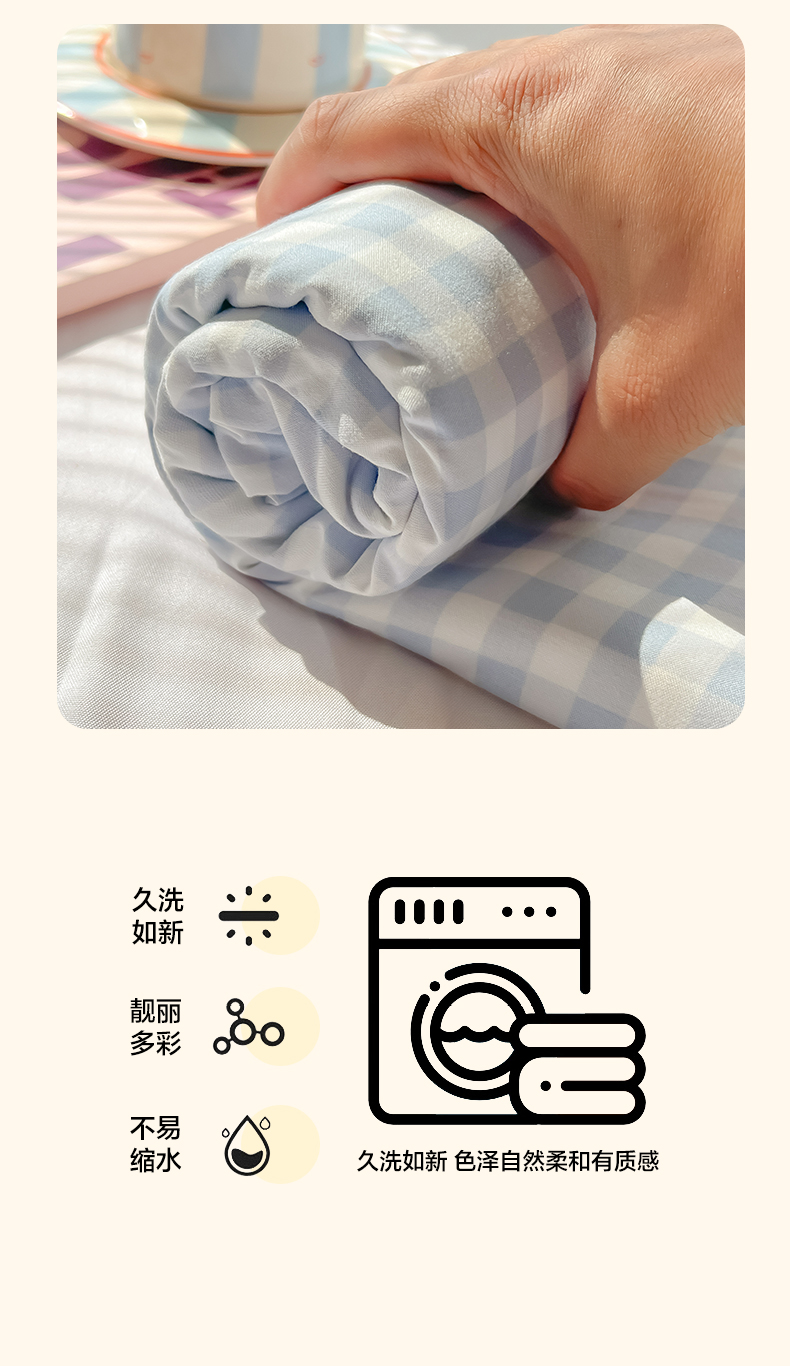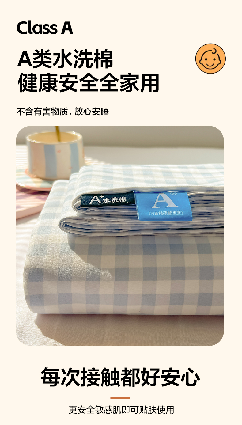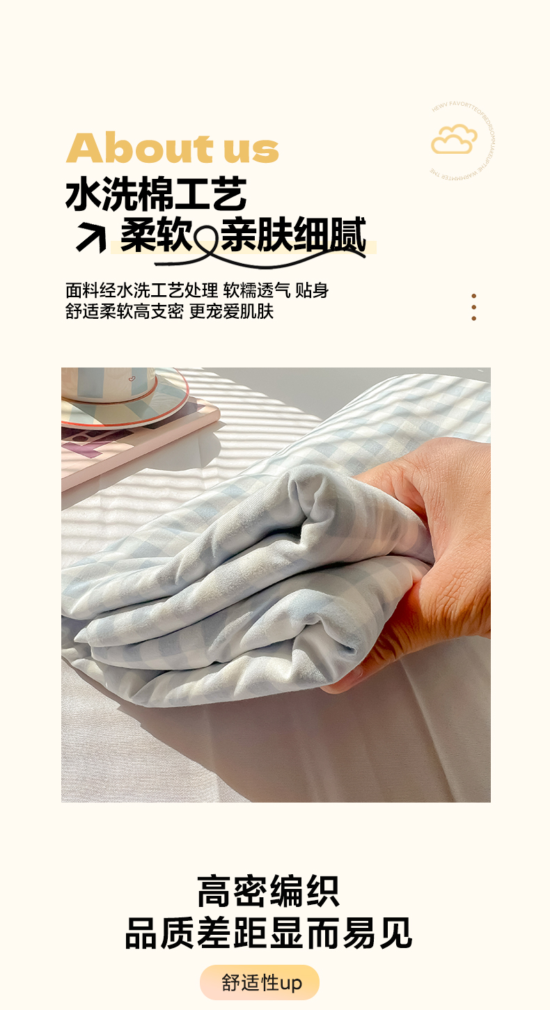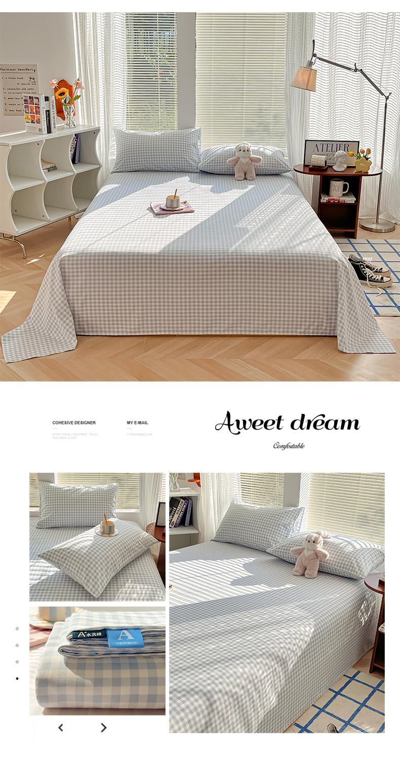 商品名称:韩巢家纺 2025新款格子纯色A类水洗棉床单单件 浅蓝格