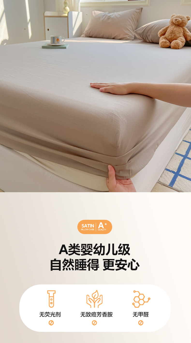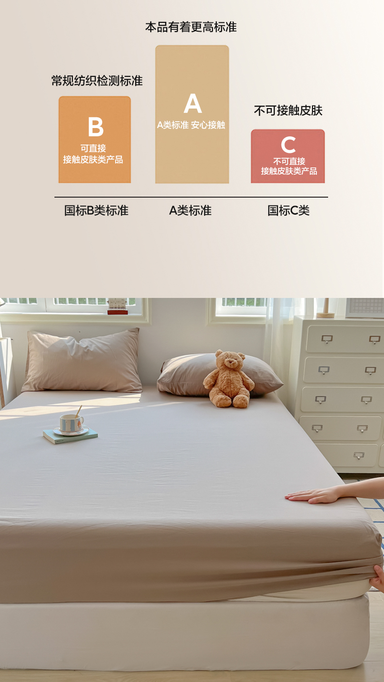 • 91家纺网 家纺一手货源 找家纺 韩巢家纺 2025新款A类纯色格子水洗棉床笠单件床罩床套 A类卡其-床笠