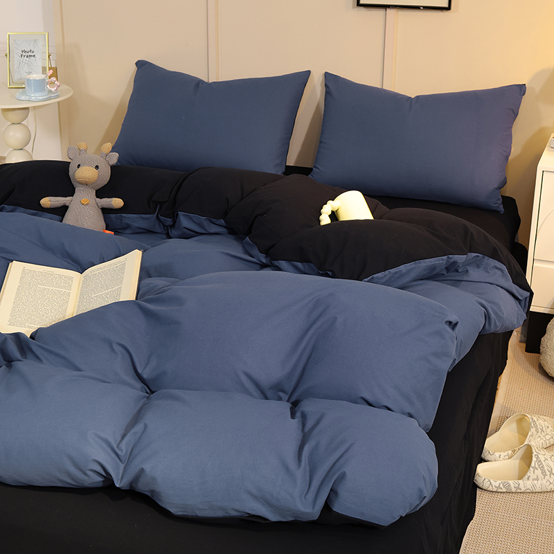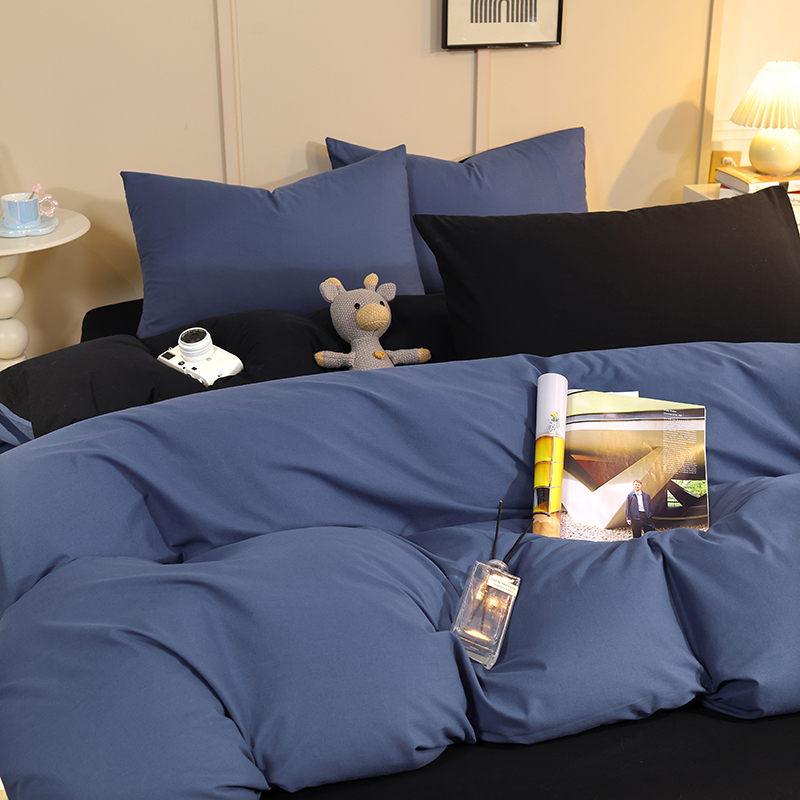 商品名称:悦织湾家纺 2025新款亲肤水洗棉纯色双拼四件套轻奢时尚 双拼宝兰+酷黑
