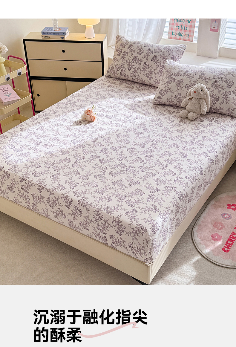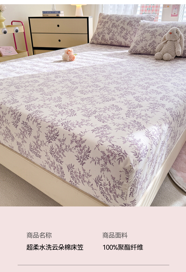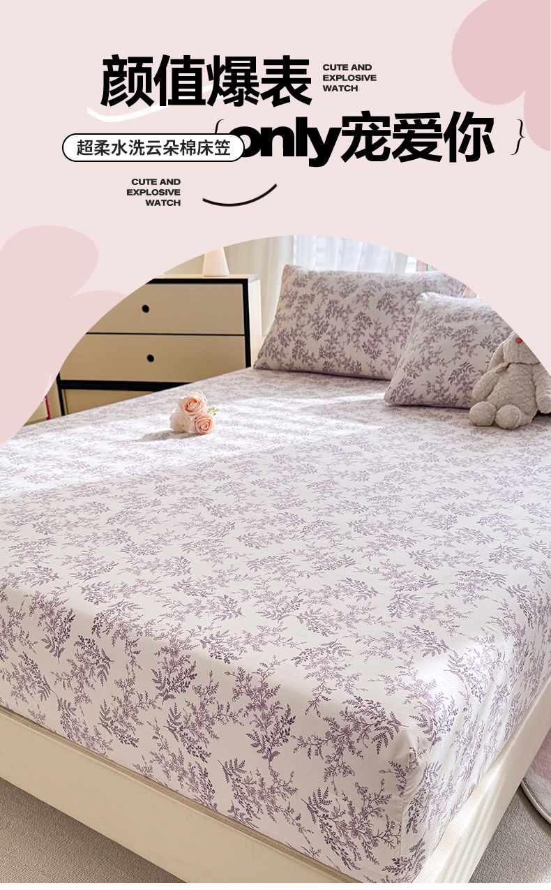 多品家纺 2025新款超柔水洗云朵棉单品床笠 梨落紫