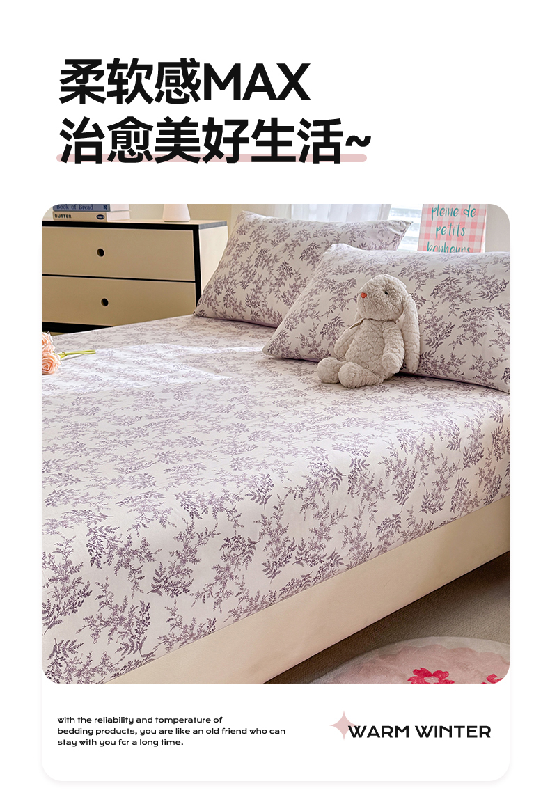 • 91家纺网 家纺一手货源 找家纺 多品家纺 2025新款超柔水洗云朵棉单品床笠 梨落紫
