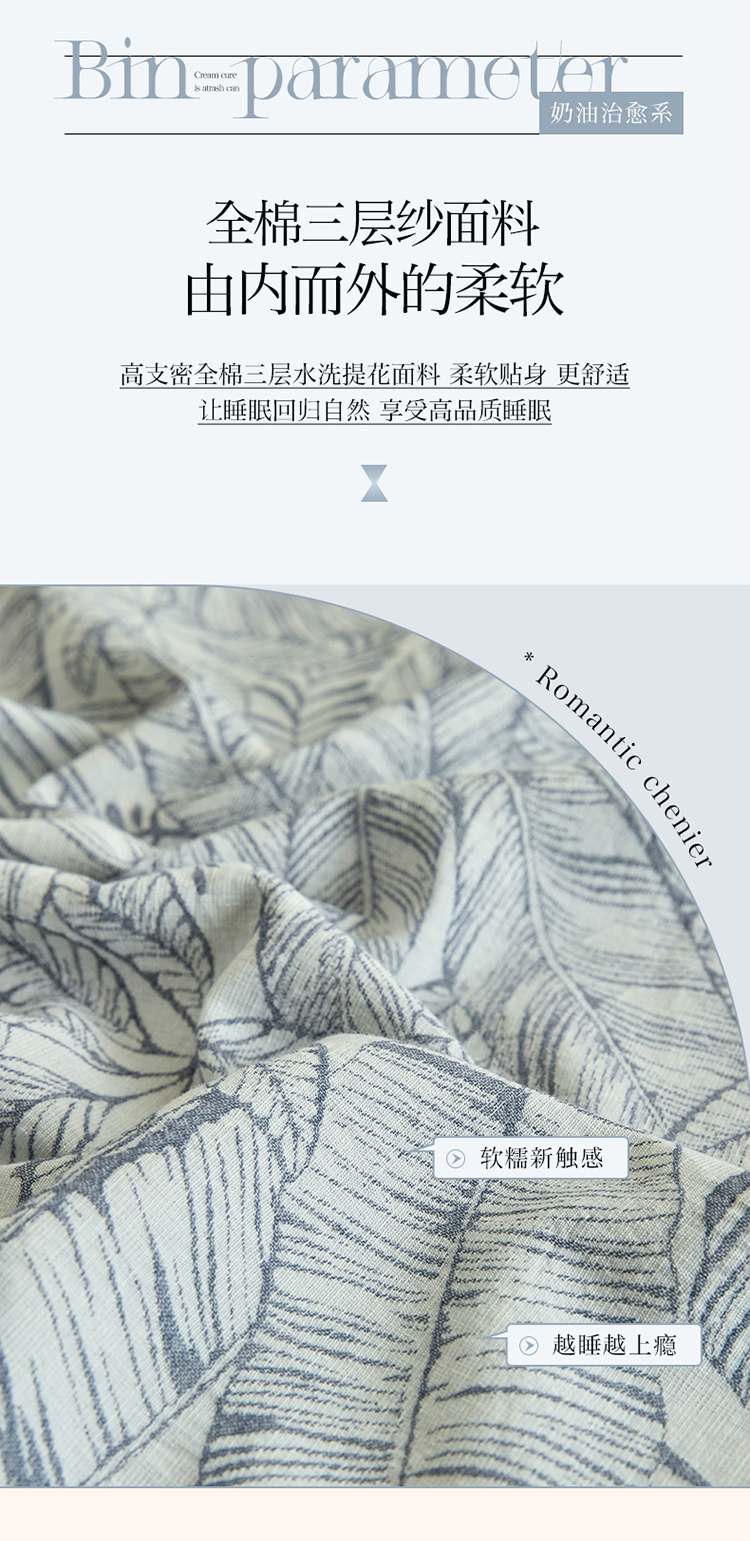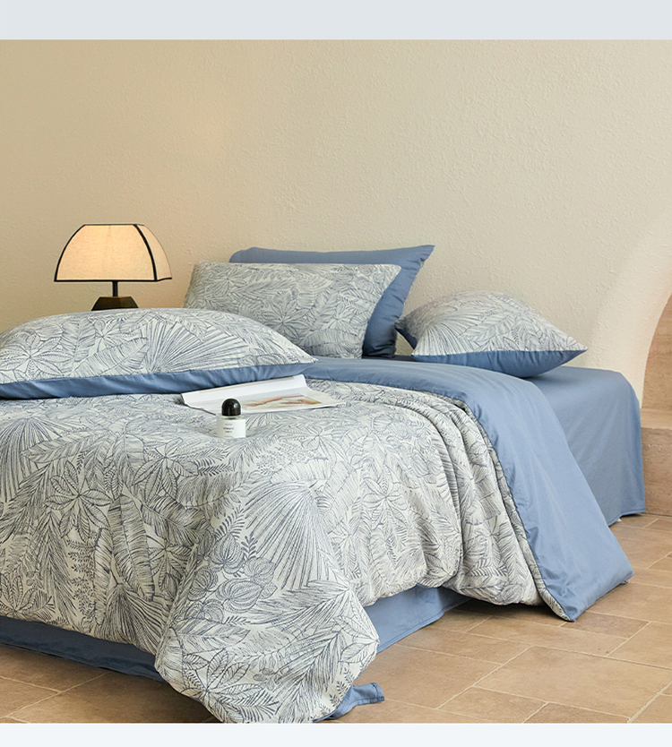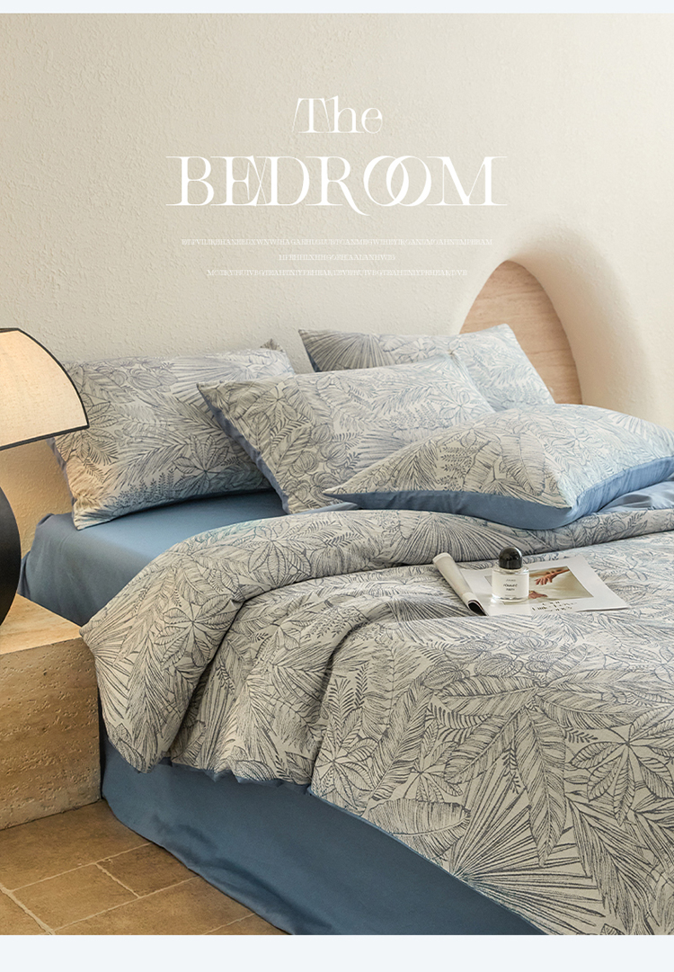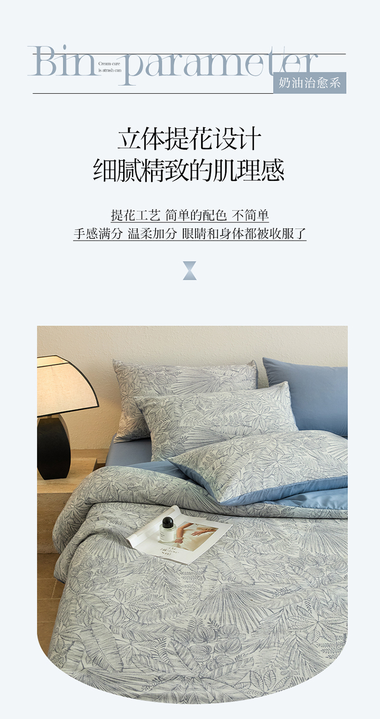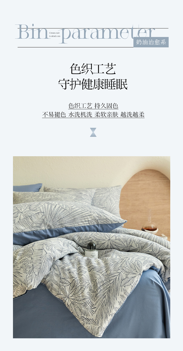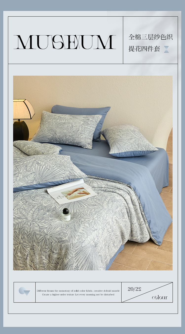当前位置: 91家纺网 > 商品网购 > 床品套件 > 四件套 > 全棉普通四件套 > 2025新款全棉三层纱色织大提花四件套系列 蕉梦-深蓝