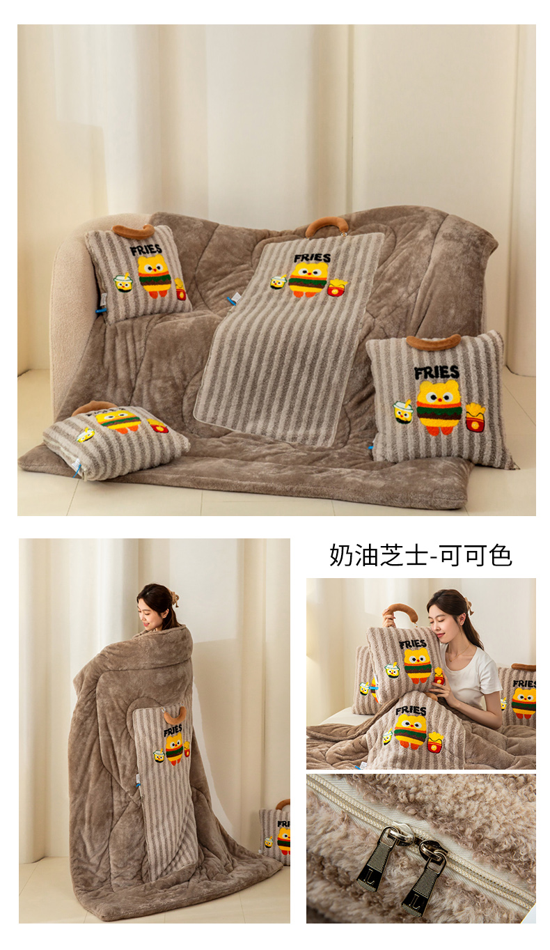 (总)2025新款加厚款图拉拉系列抱枕被,图拉拉粉色,图拉拉咖啡色,图拉拉卡其色