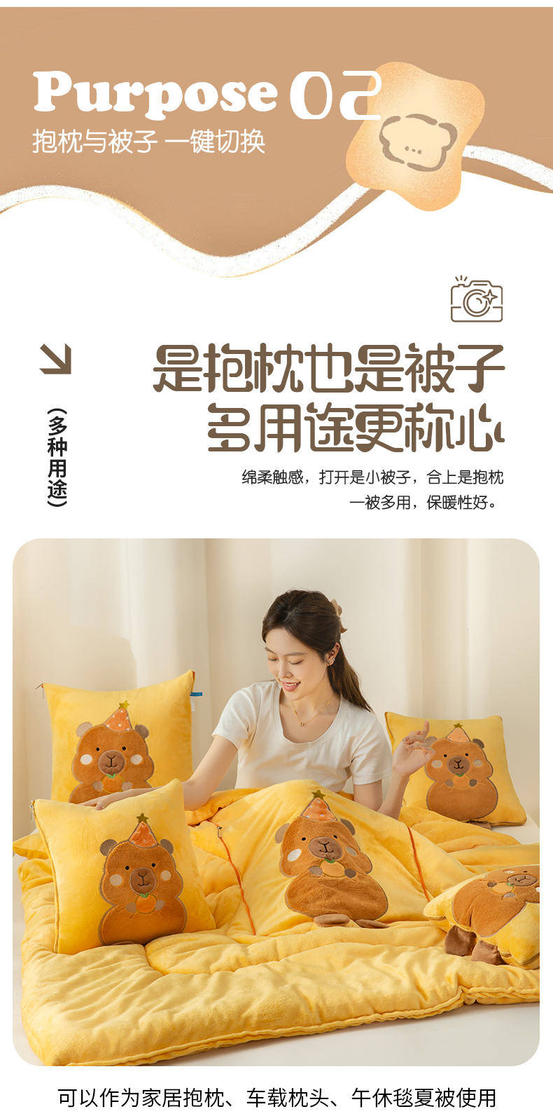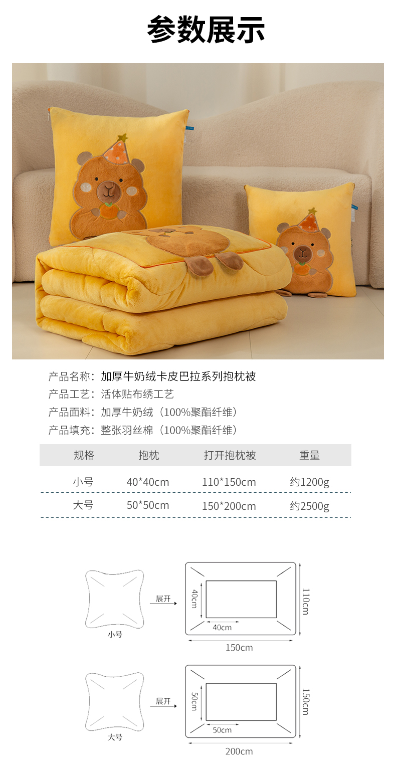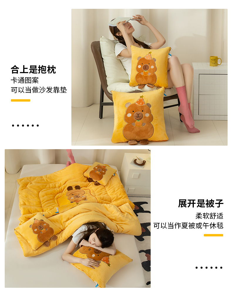 商品名称:雷娜家居 2025新款卡皮巴拉系列抱枕被 卡皮巴拉黄色