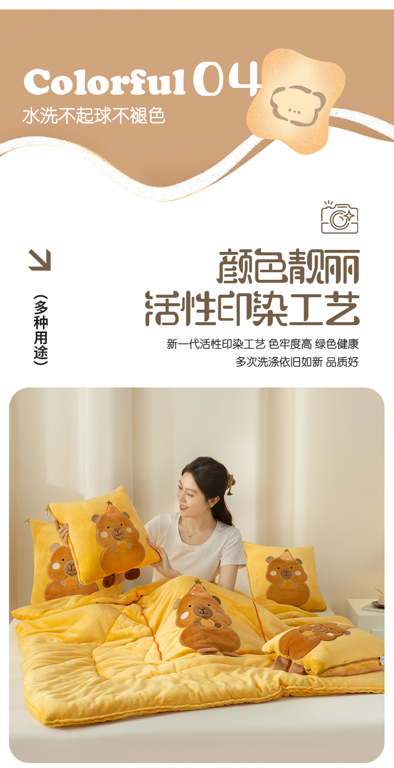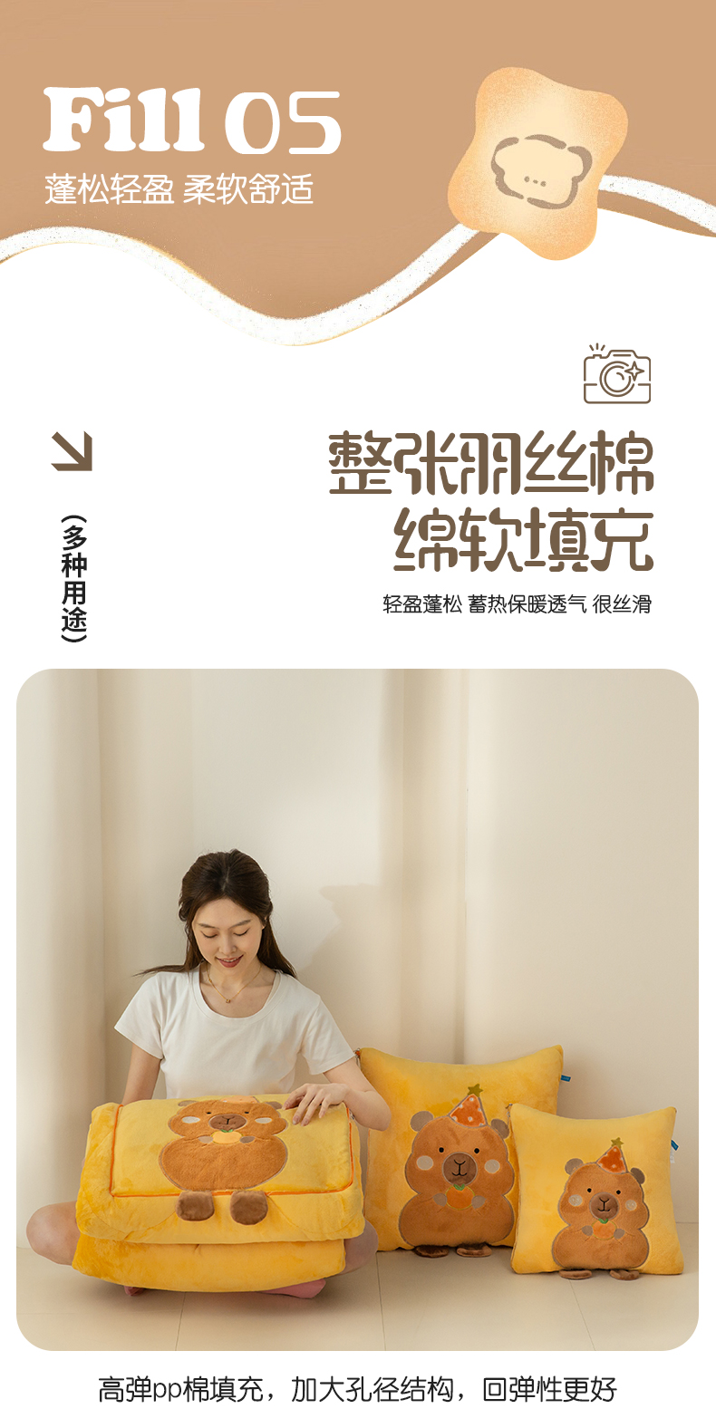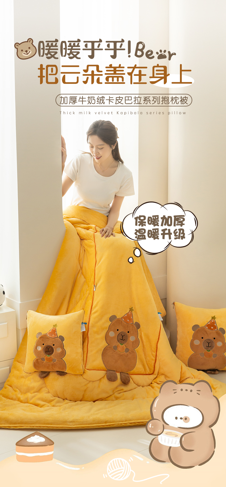 商品名称:雷娜家居 2025新款卡皮巴拉系列抱枕被 卡皮巴拉黄色