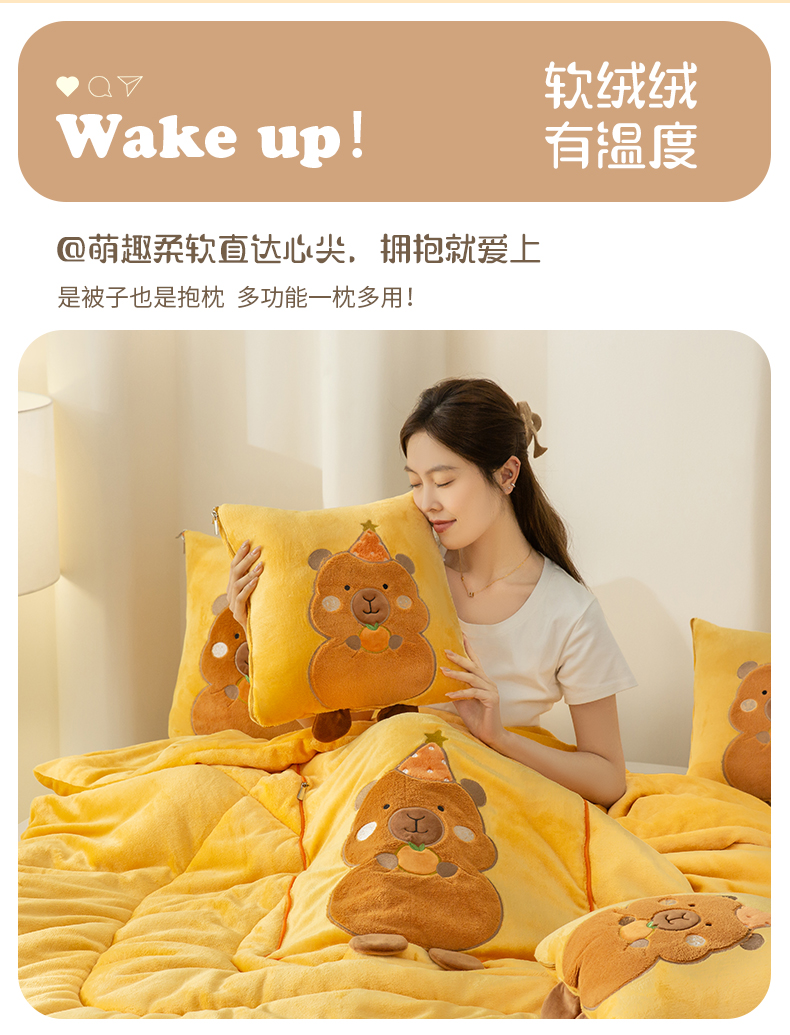 雷娜家居 2025新款卡皮巴拉系列抱枕被 卡皮巴拉黄色