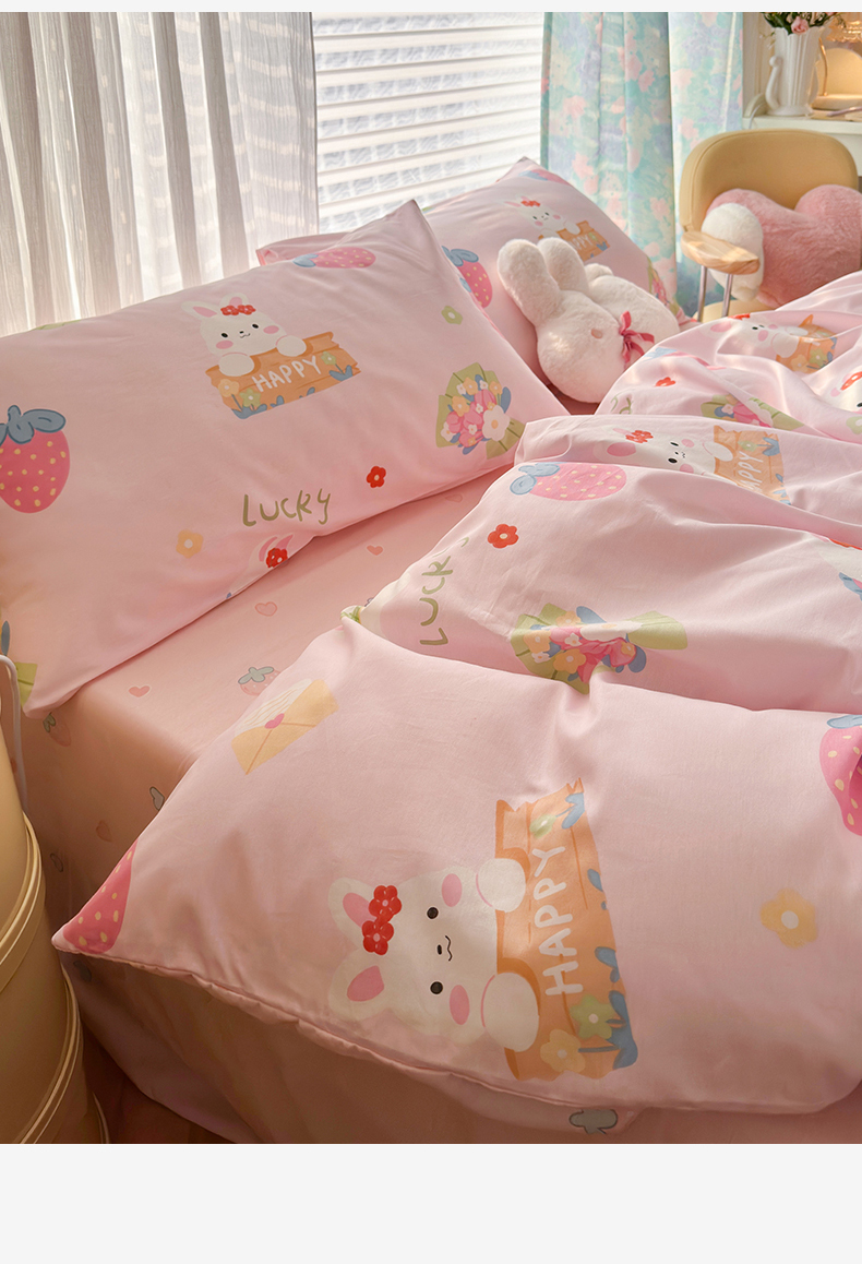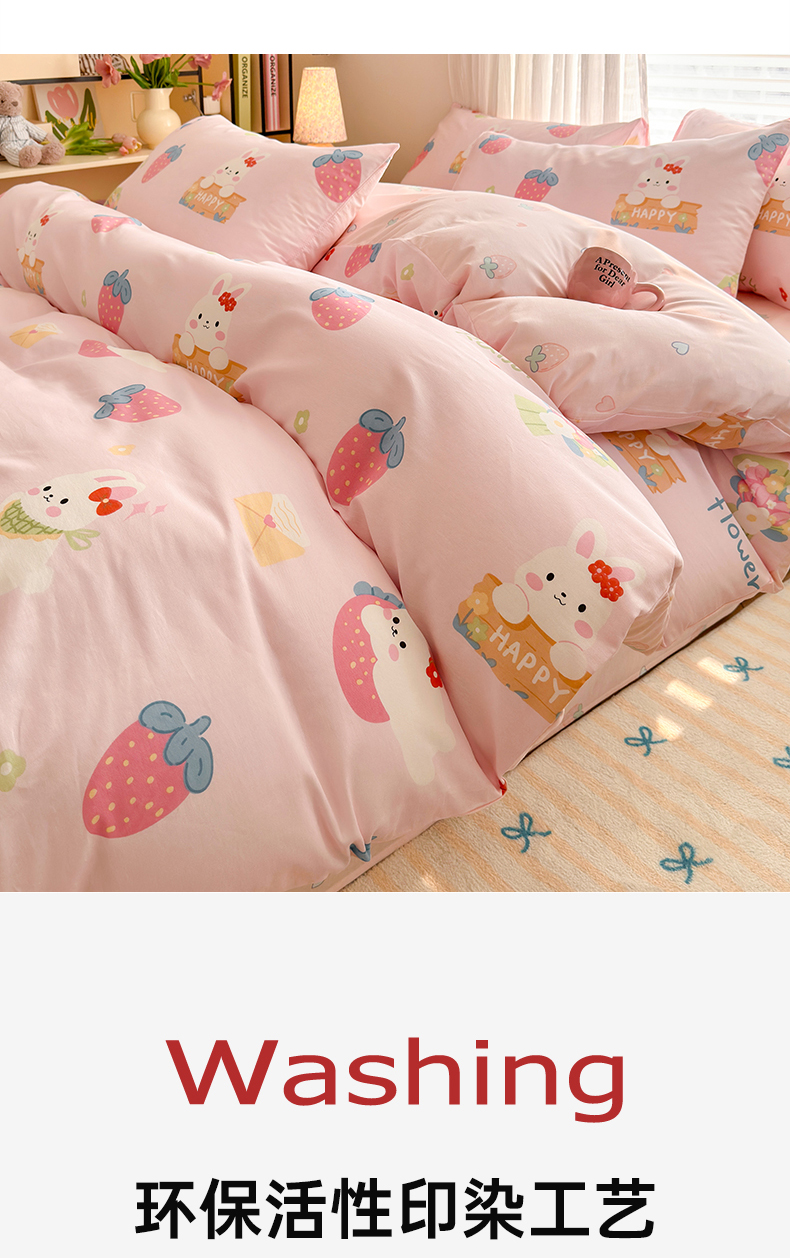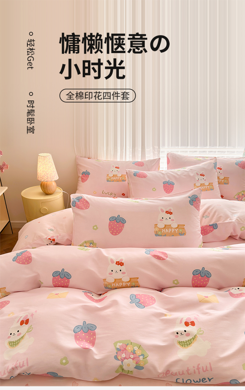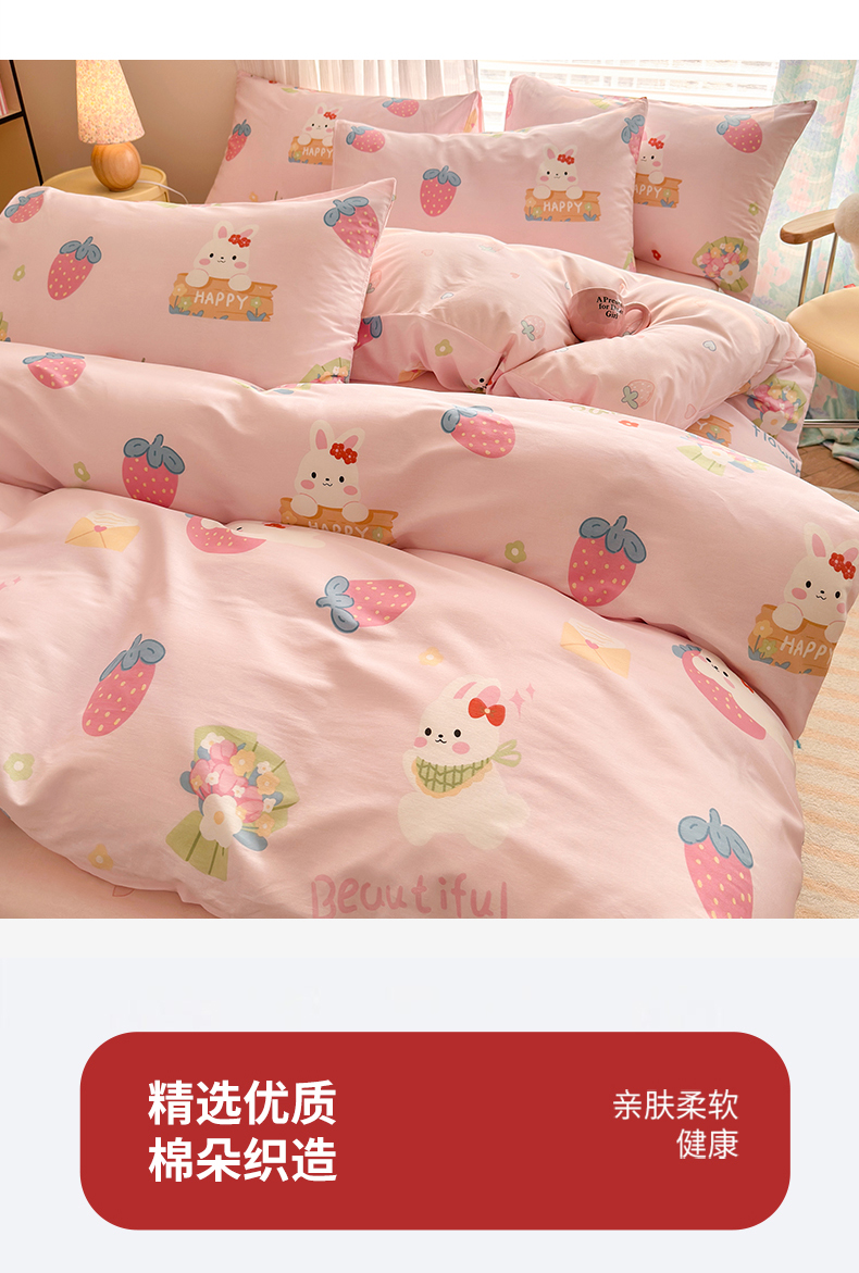 名兮家居 2025新款12868全棉纯棉四件套 草莓小白兔