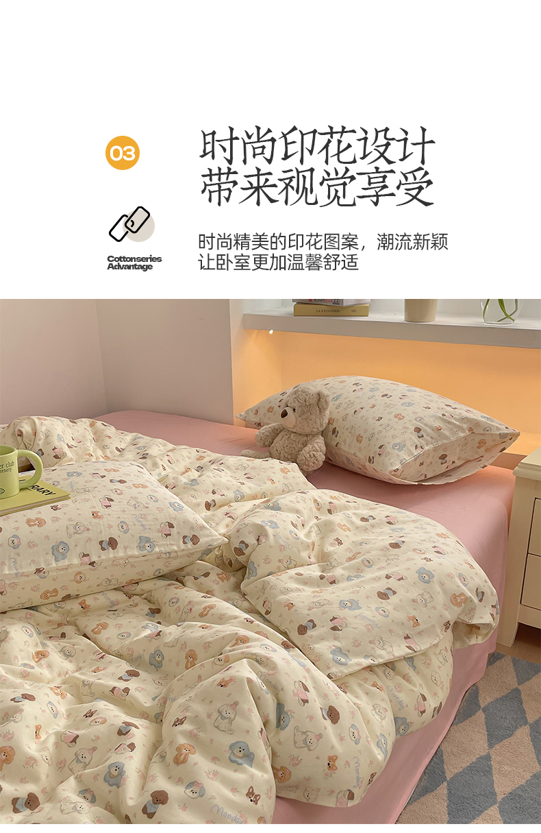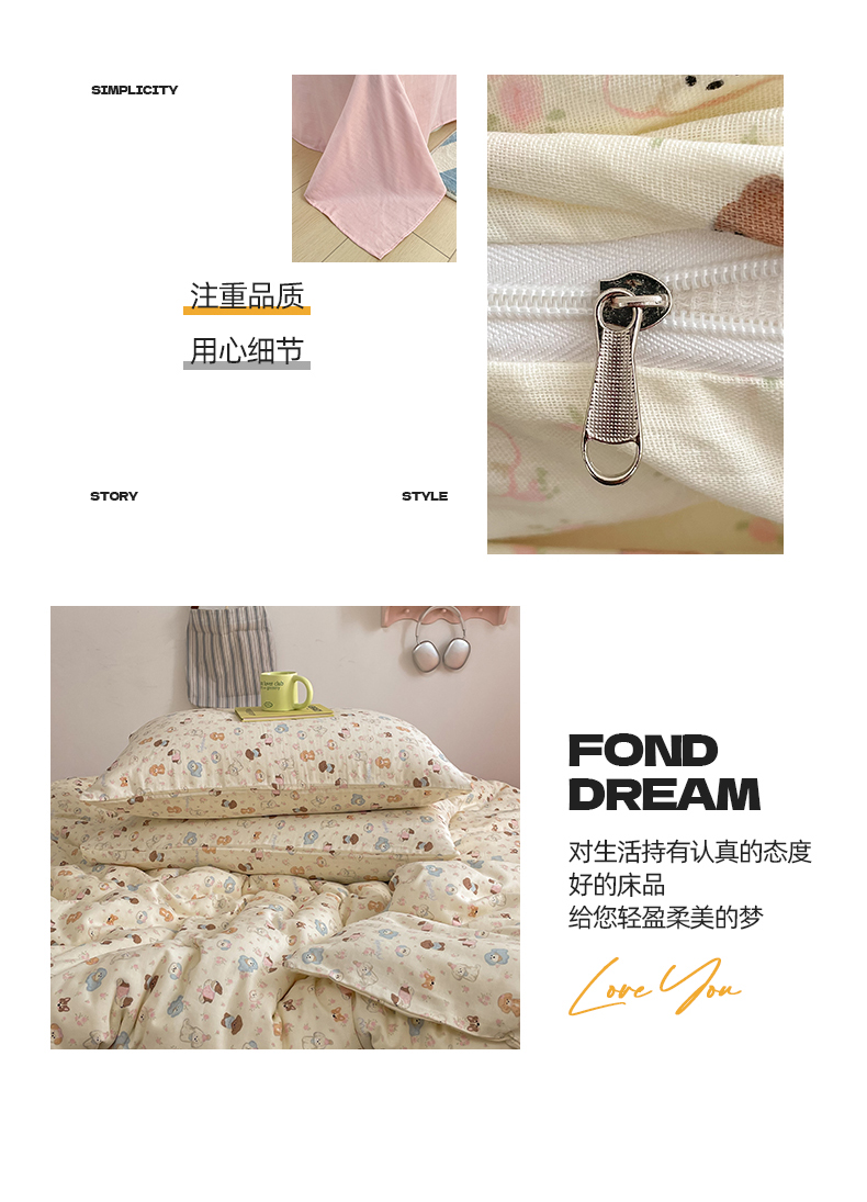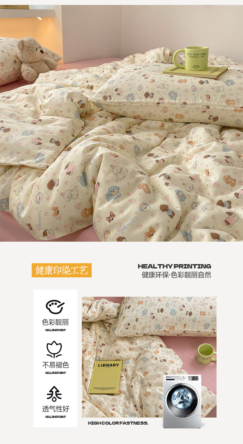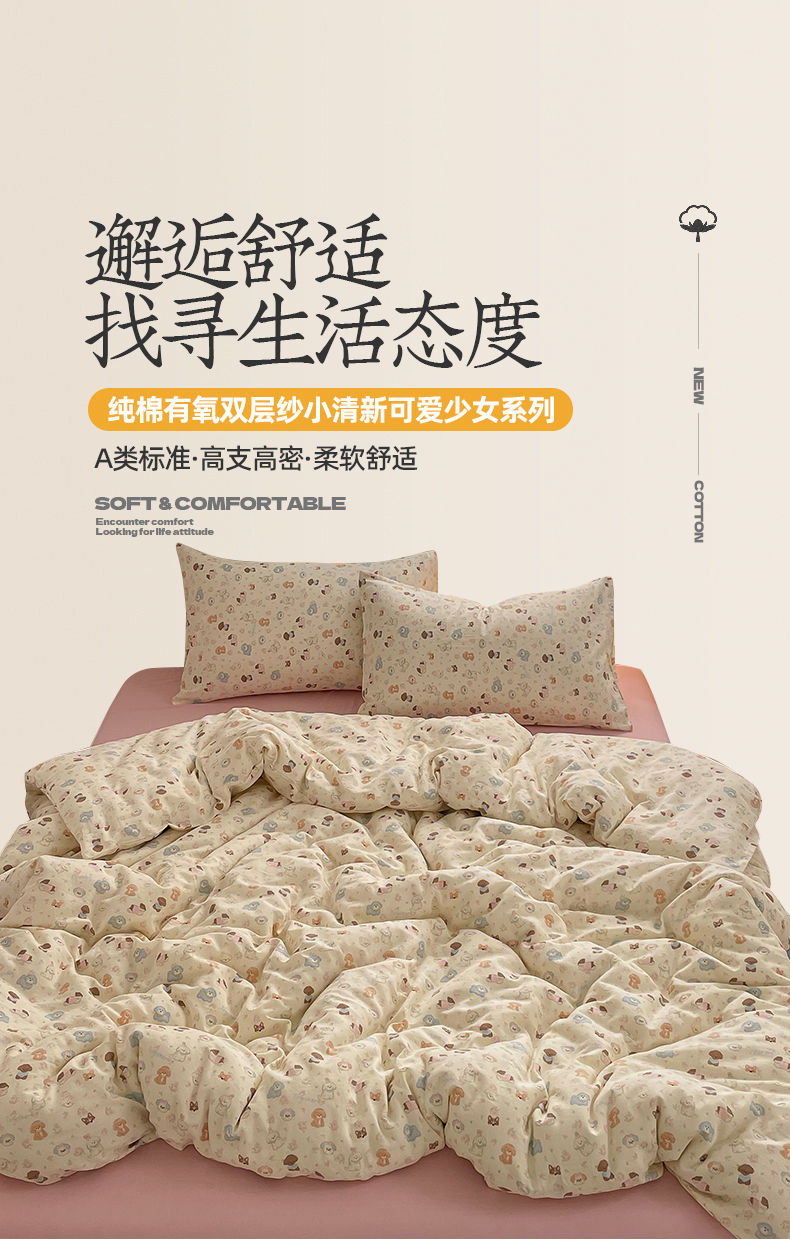 当前位置: 91家纺网 > 商品网购 > 床品套件 > 四件套 > 全棉普通四件套 > 桃子家居2025新款A类纯棉有氧双层纱小清新可爱少女系列四件套 棉双层纱-泡芙奶昔狗