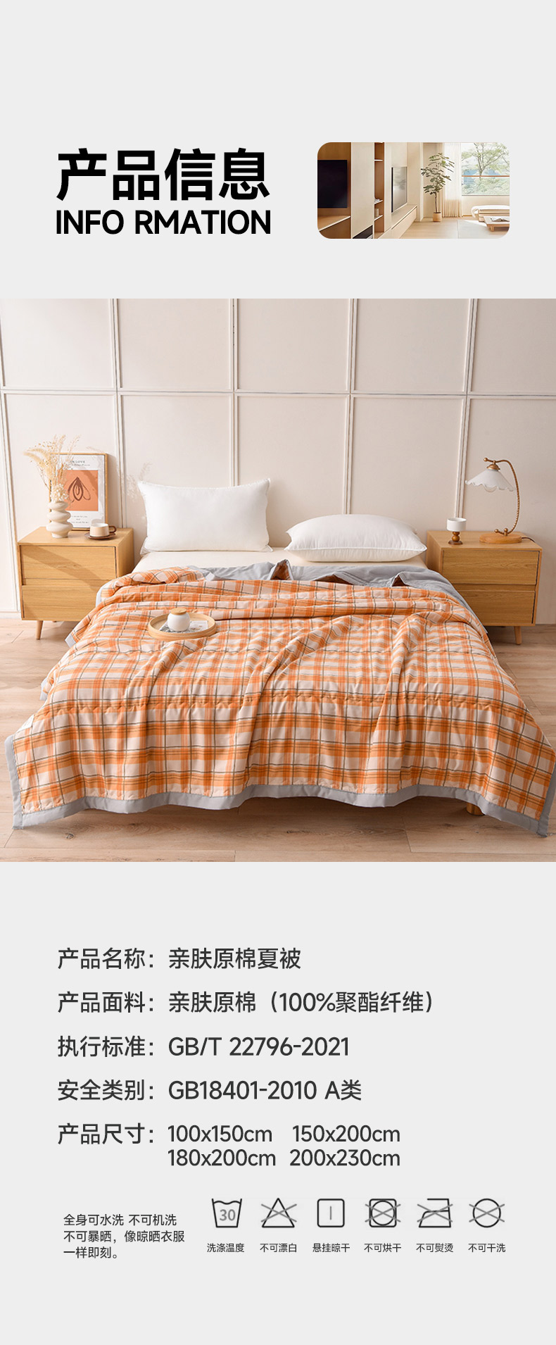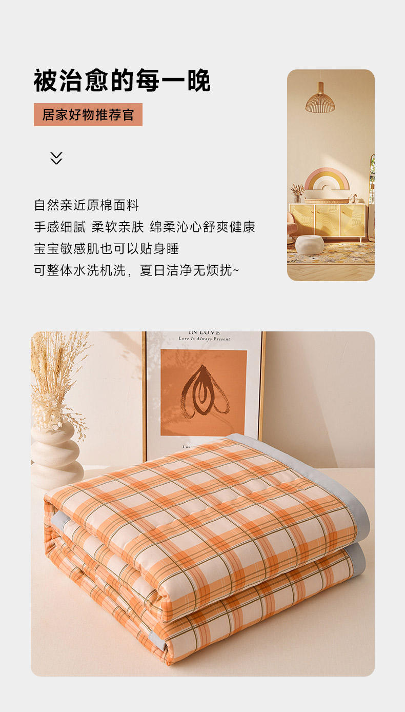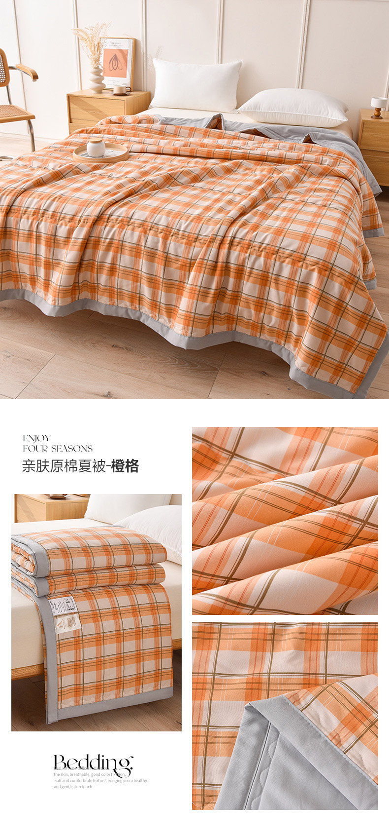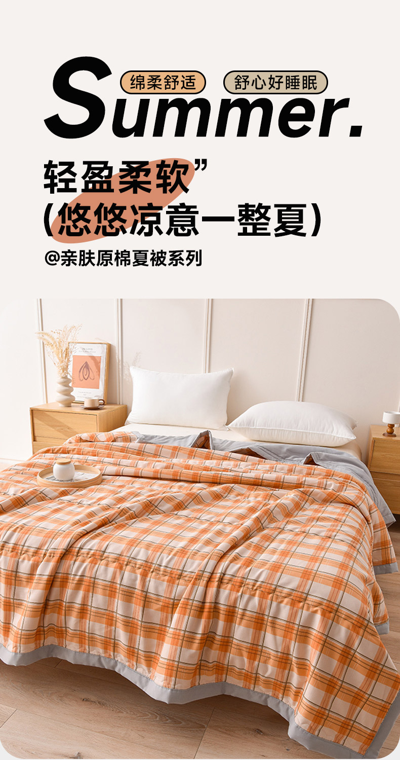 商品名称:艾兜坊 2025新款亲肤原棉夏被 7橙格