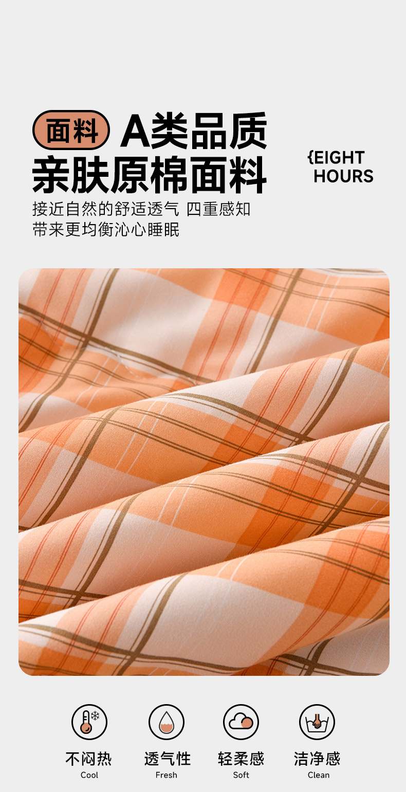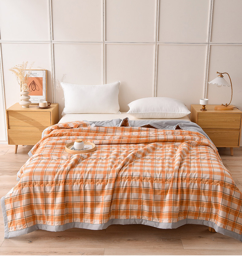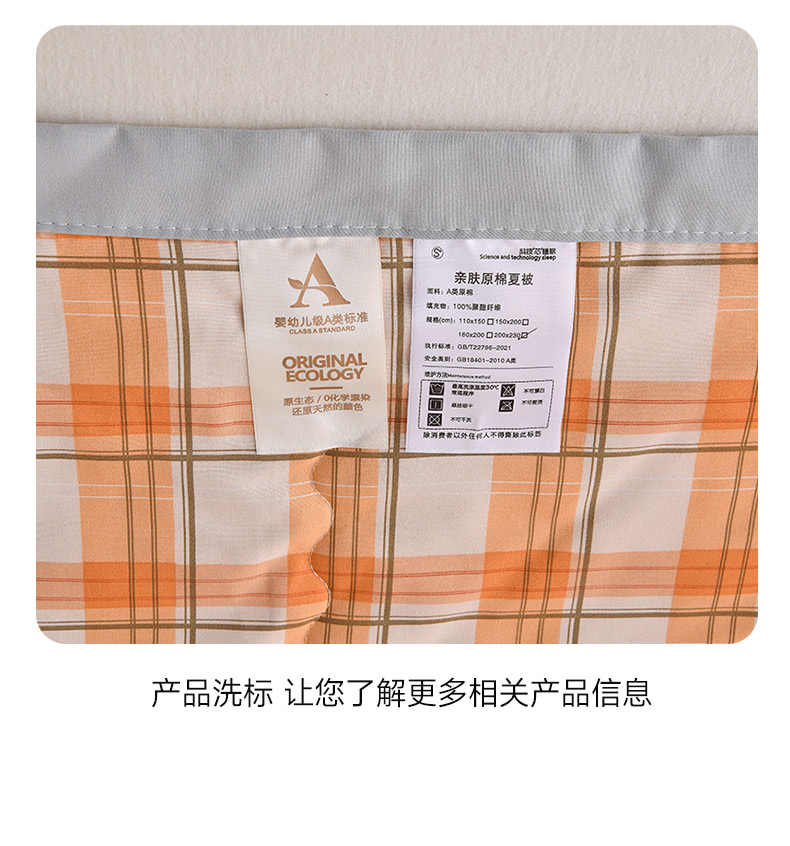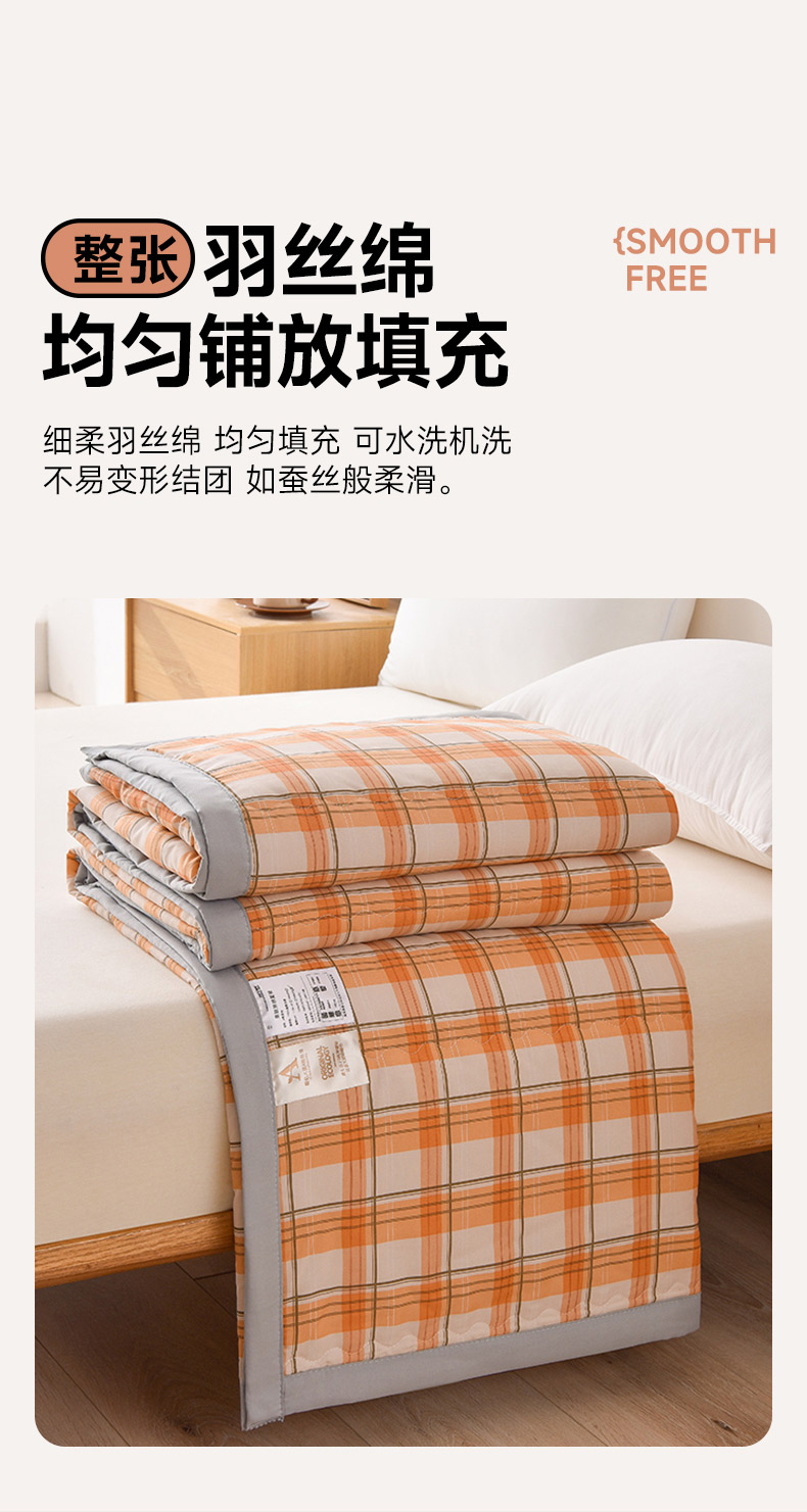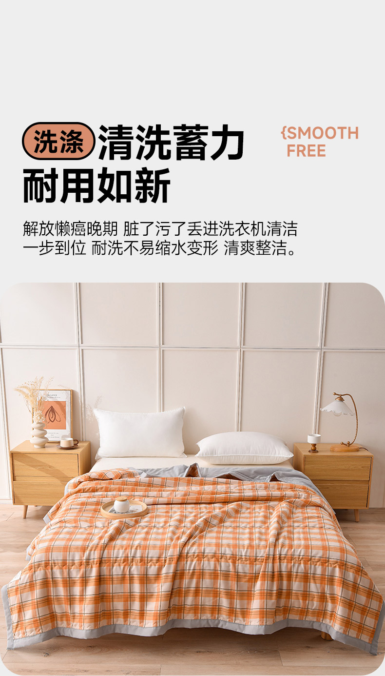 商品名称:艾兜坊 2025新款亲肤原棉夏被 7橙格