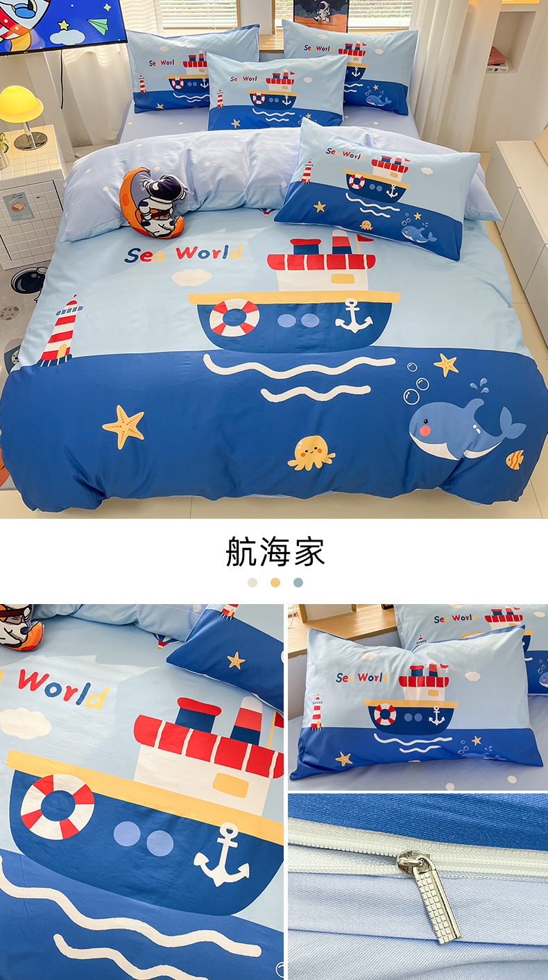 当前位置: 91家纺网 > 商品网购 > 床品套件 > 四件套 > 全棉普通四件套 > 孩子王 2025新款亲肤活性大版纯棉专版太空人卡通学生儿童宿舍四件套系列 航海家