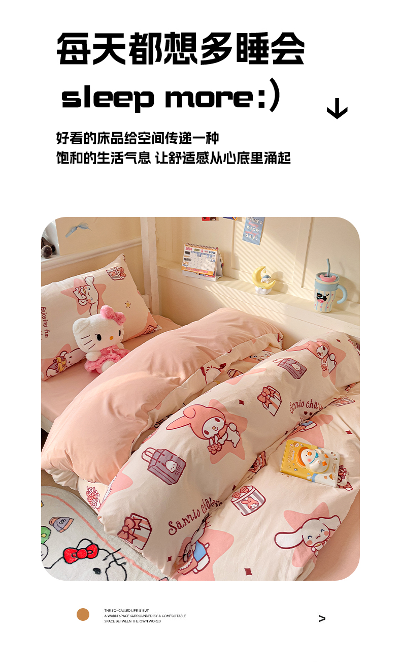 当前位置: 91家纺网 > 商品网购 > 床品套件 > 四件套 > 水洗棉四件套 > 贝扬思家纺 2025新款水洗棉三丽鸥简约系列四件套-宿舍床 拼图kt
