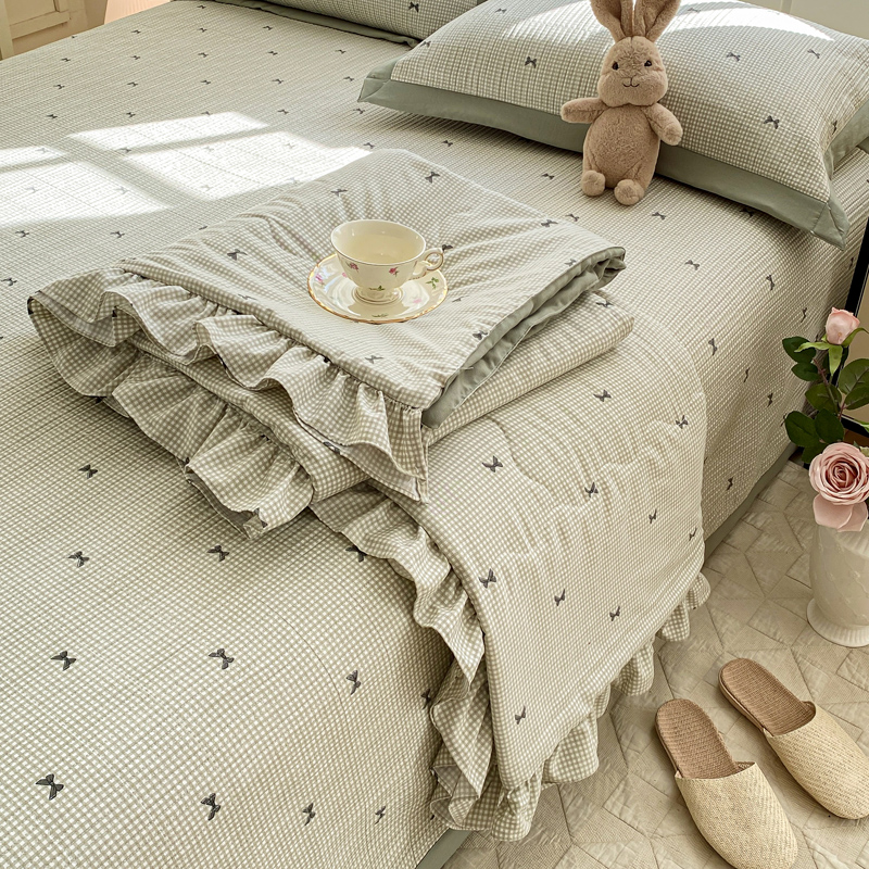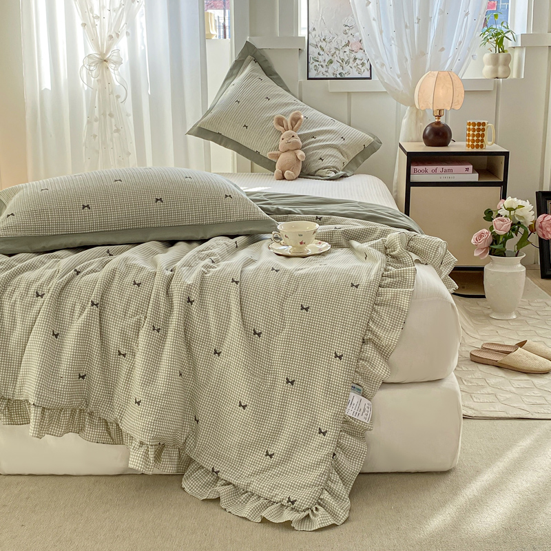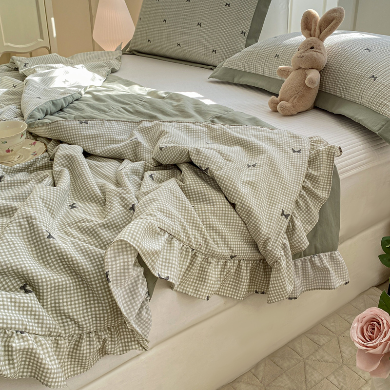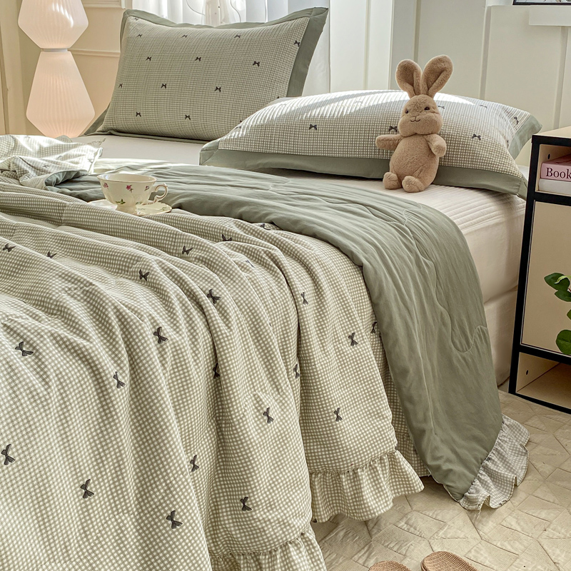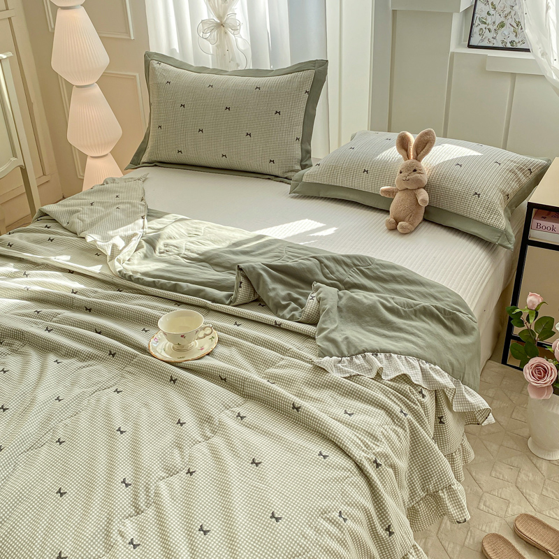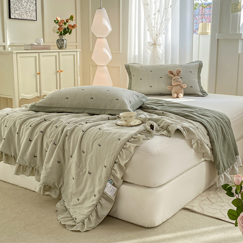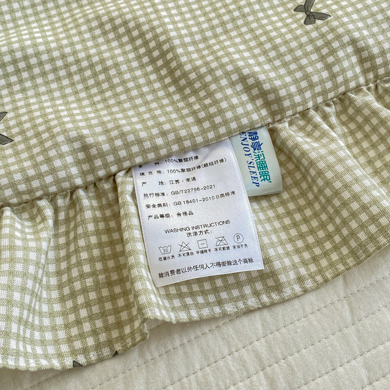 享受云端的柔软,是霎那间的心动~ 面料超软糯、、绗缝设计不易跑棉,贴身柔软又舒适,告别床单的褶皱与烦恼,法式小碎花。享受视觉的美感。沉浸式的入睡,仿佛进了森林氧吧。采用整张超细中空纤维棉 久用不板结 无甲醛,无芳香胺。婴幼儿可用
