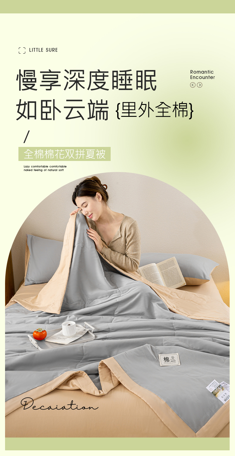 • 91家纺网 家纺一手货源 找家纺 憨豆家纺 2025新款里外全棉100%棉花夏被无印风格纯棉夏凉被纯色双拼空调被直播被子(包检测) 奶咖+山灰