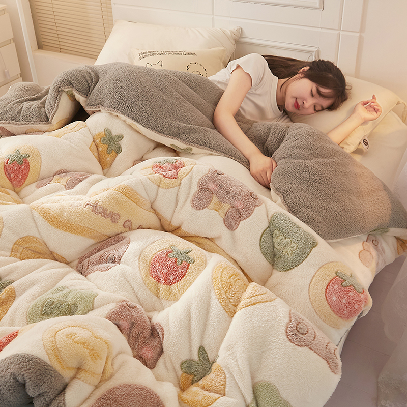 被子 > 冬被 > 买家秀 爆款花色不断货)A类母婴级羊羔绒被子被芯牛奶绒被子被芯春秋被秋冬被雪花绒冬被被芯牛奶绒冬被 姜饼熊