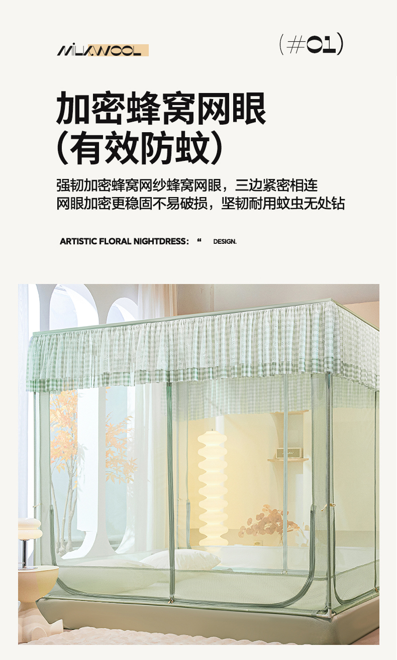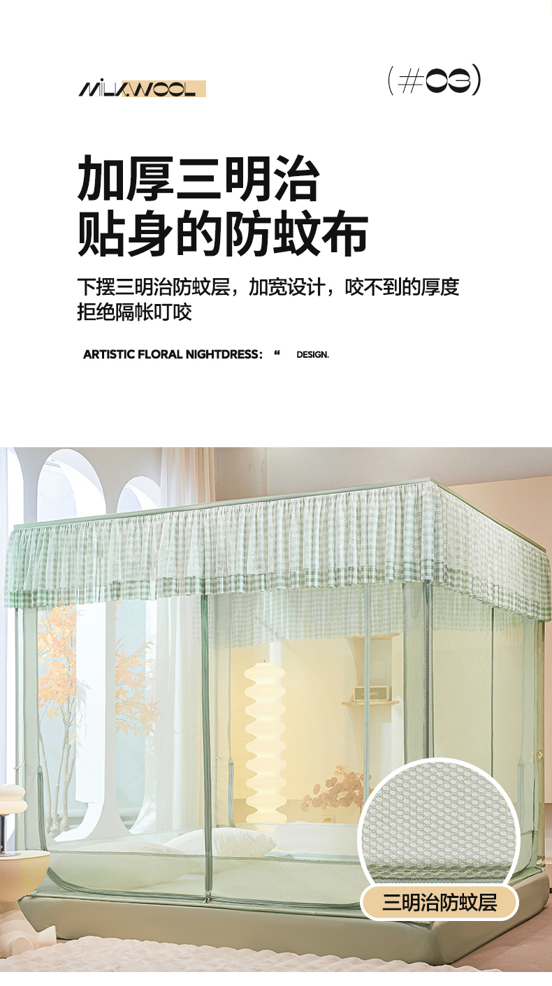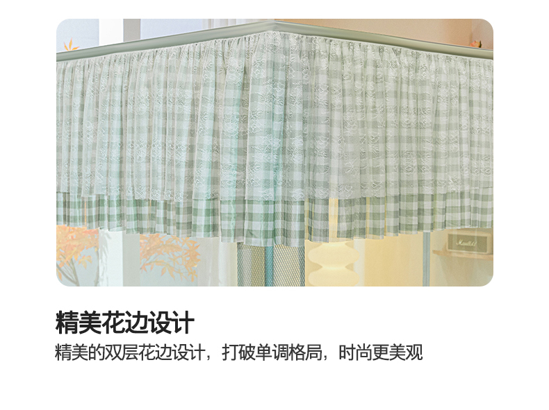 当前位置: 91家纺网 > 商品网购 > 床上用品 > 蚊帐 > 坐床式蚊帐 > 青竹苑2025新款花边款床笠底防摔坐床蚊帐-格格巫 格格巫-瓦松绿
