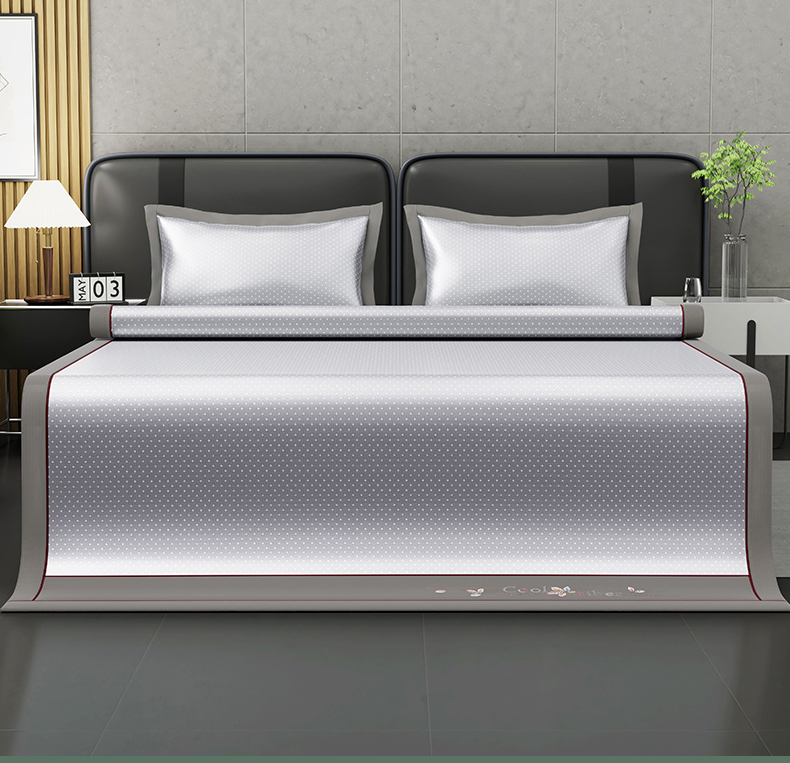 (总)2023新款超精密冰丝席-小斜纹系列-床笠款藤席凉席竹席,粉色,蓝色,绿色,银灰